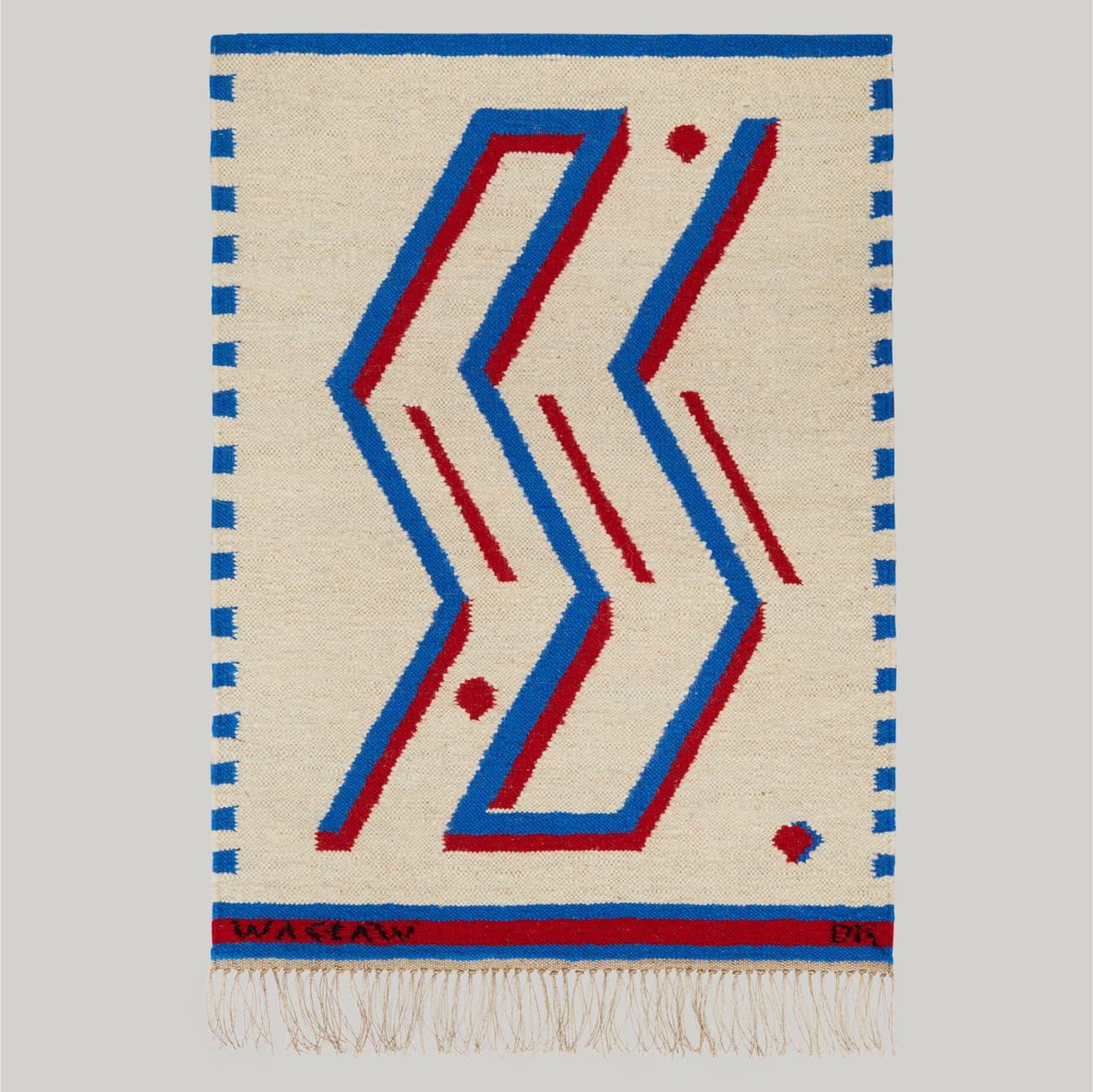 Kilim Mały Wacław, 75 × 100 cm, wełna i len, proj. Dominika Krogulska-Czekalska, Splot, Polska, 2024.