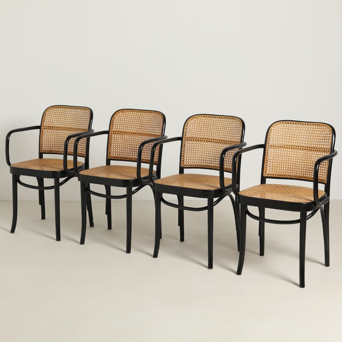Zestaw czterech krzeseł nr 811 z giętego drewna bukowego i trzciny, proj. Josef Hoffmann, FMG Radomsko, Polska, lata 70.7 900 plnView product