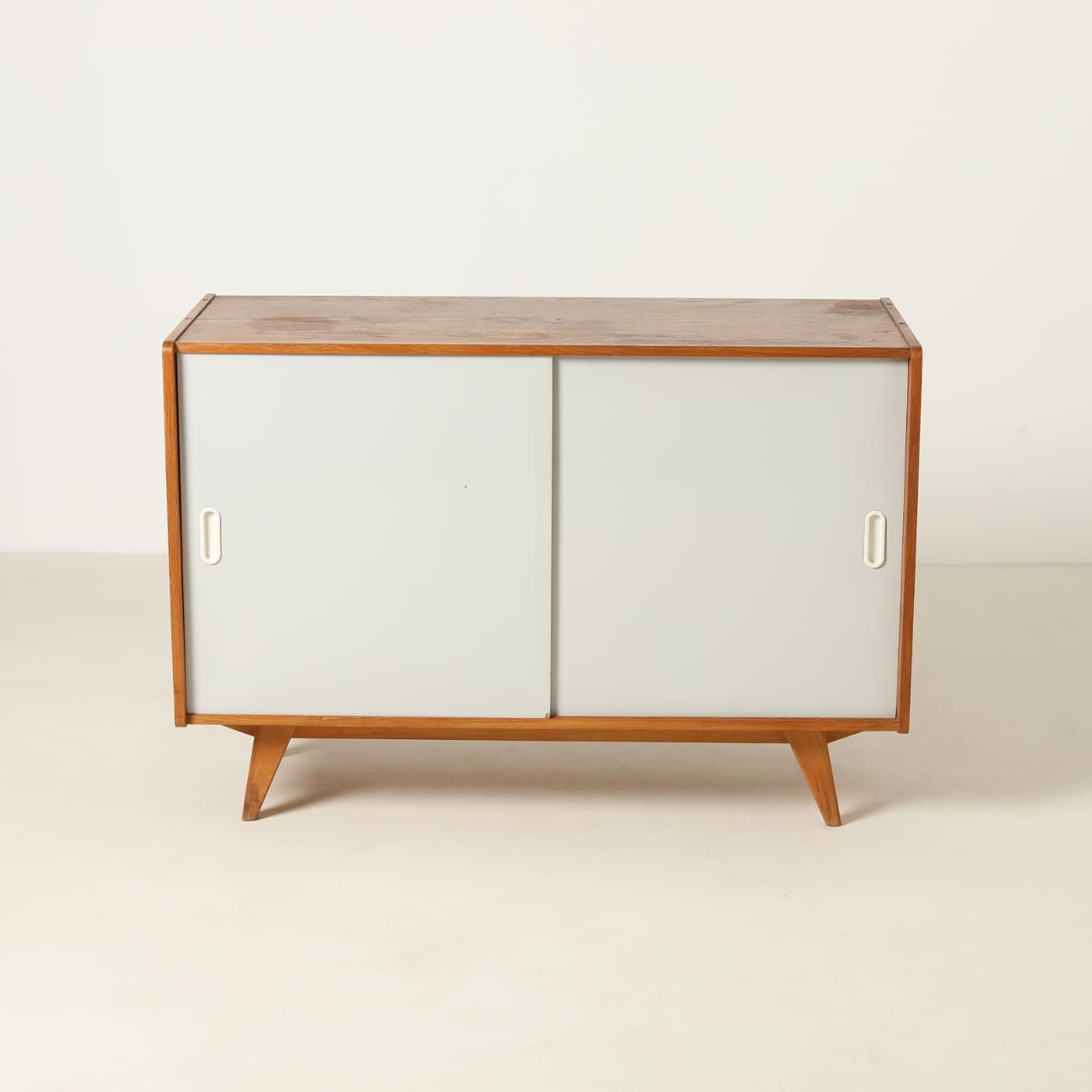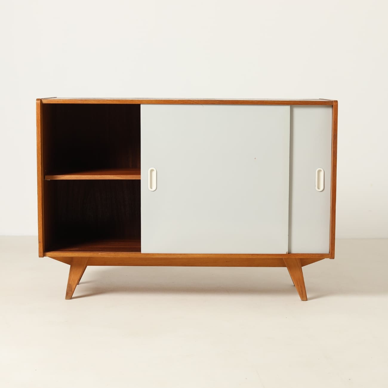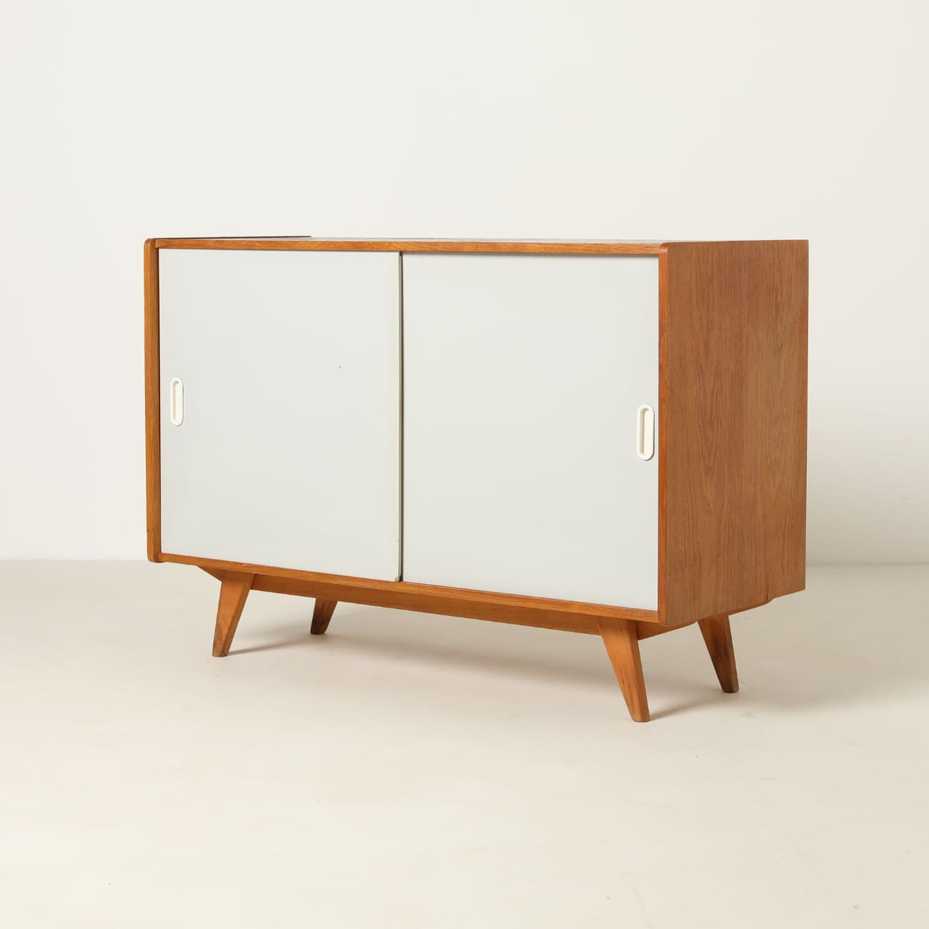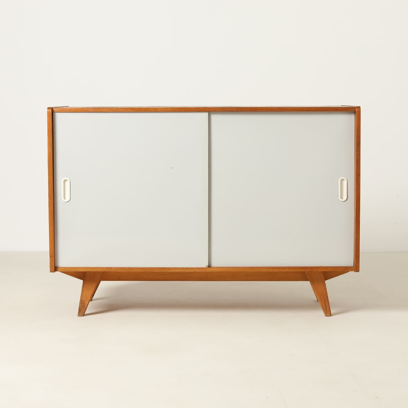 Dębowa komoda z drzwiami przesuwnymi, proj. Jiri Jiroutek, Czechosłowacja, lata 60.