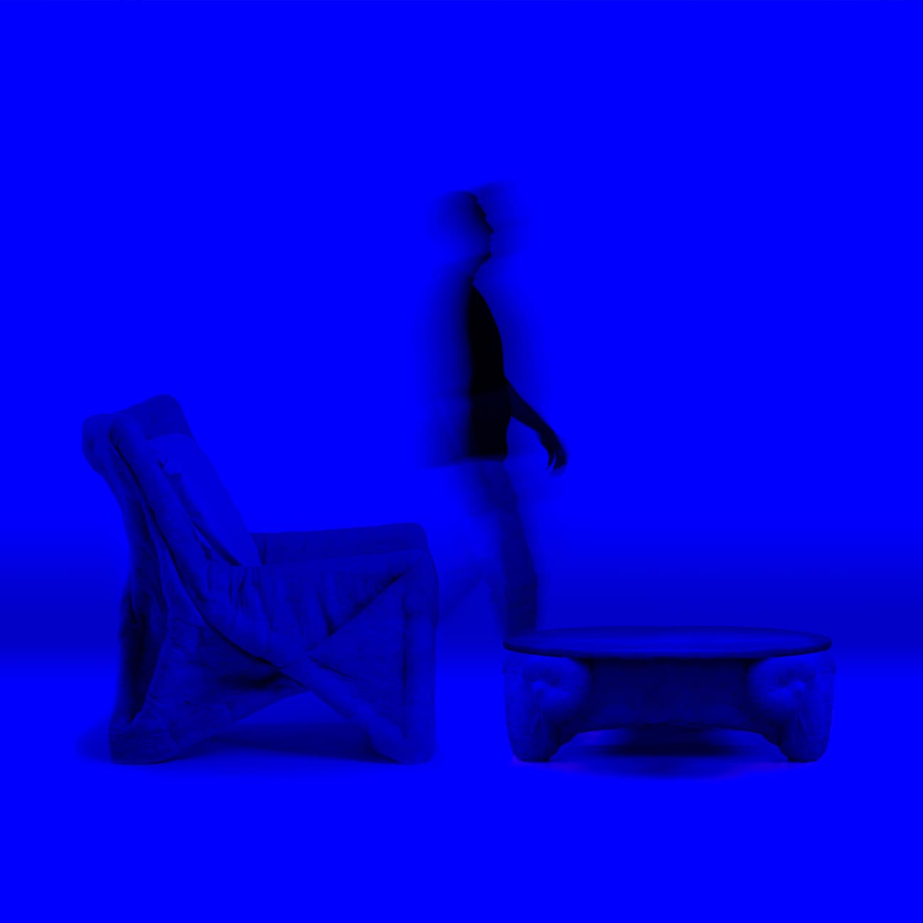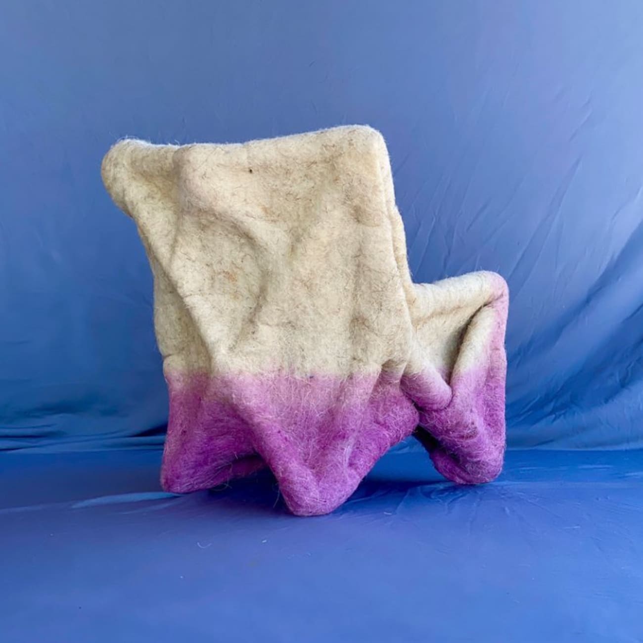 Fotel i podnóżek filcowy Danik – obiekt upcyclingowy z biomateriału, proj. Danik Uderbekov, Kazachstan, 2023.