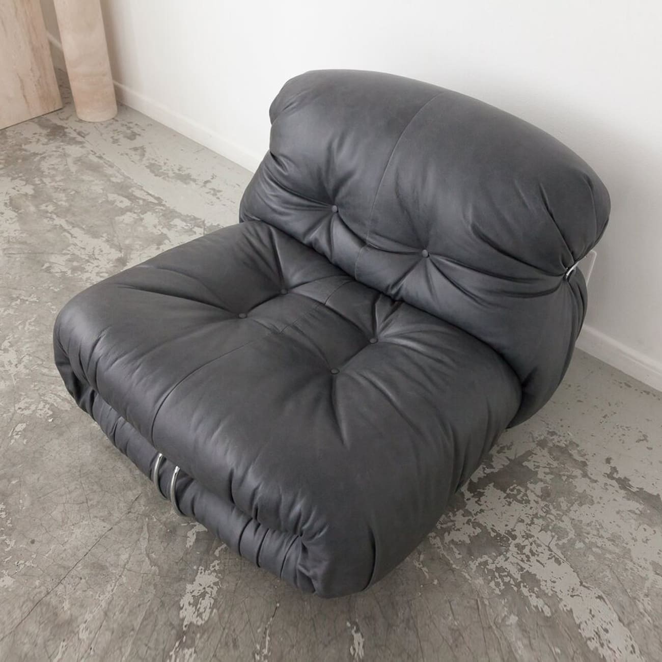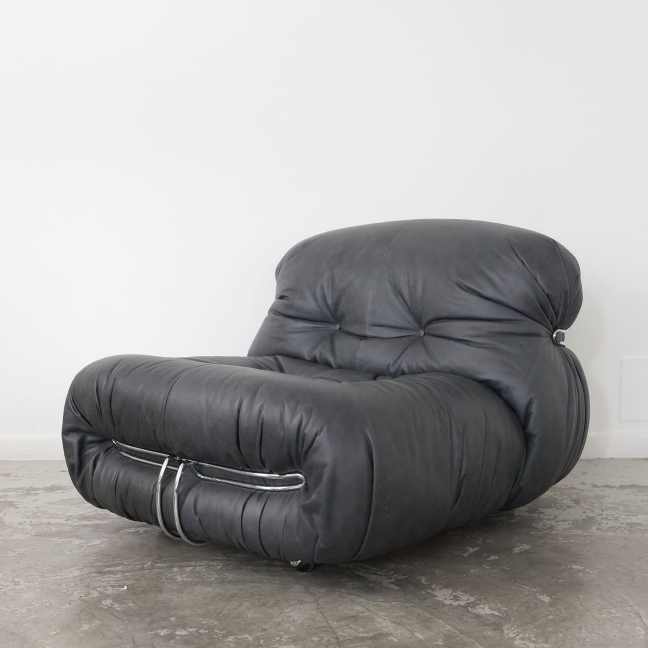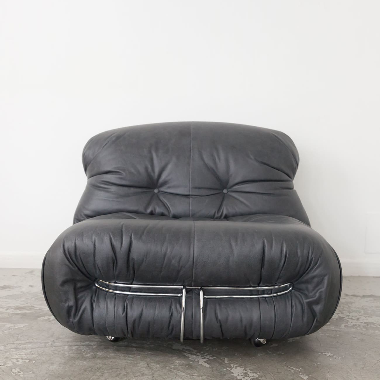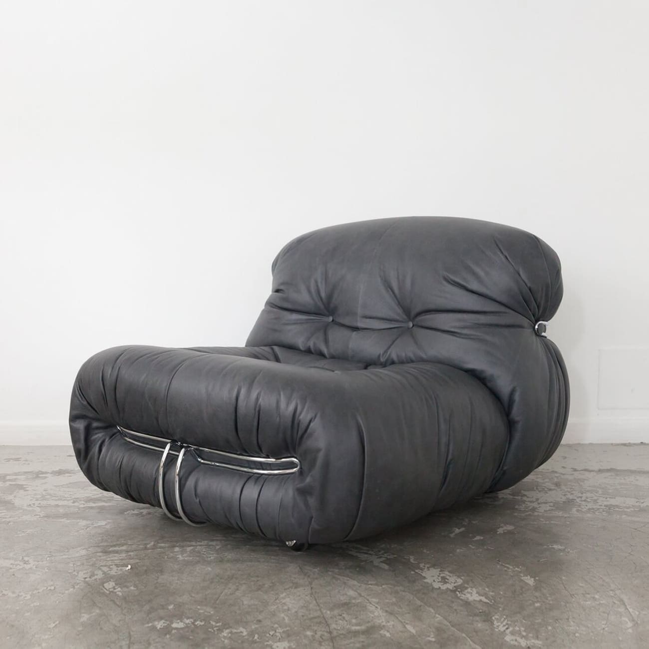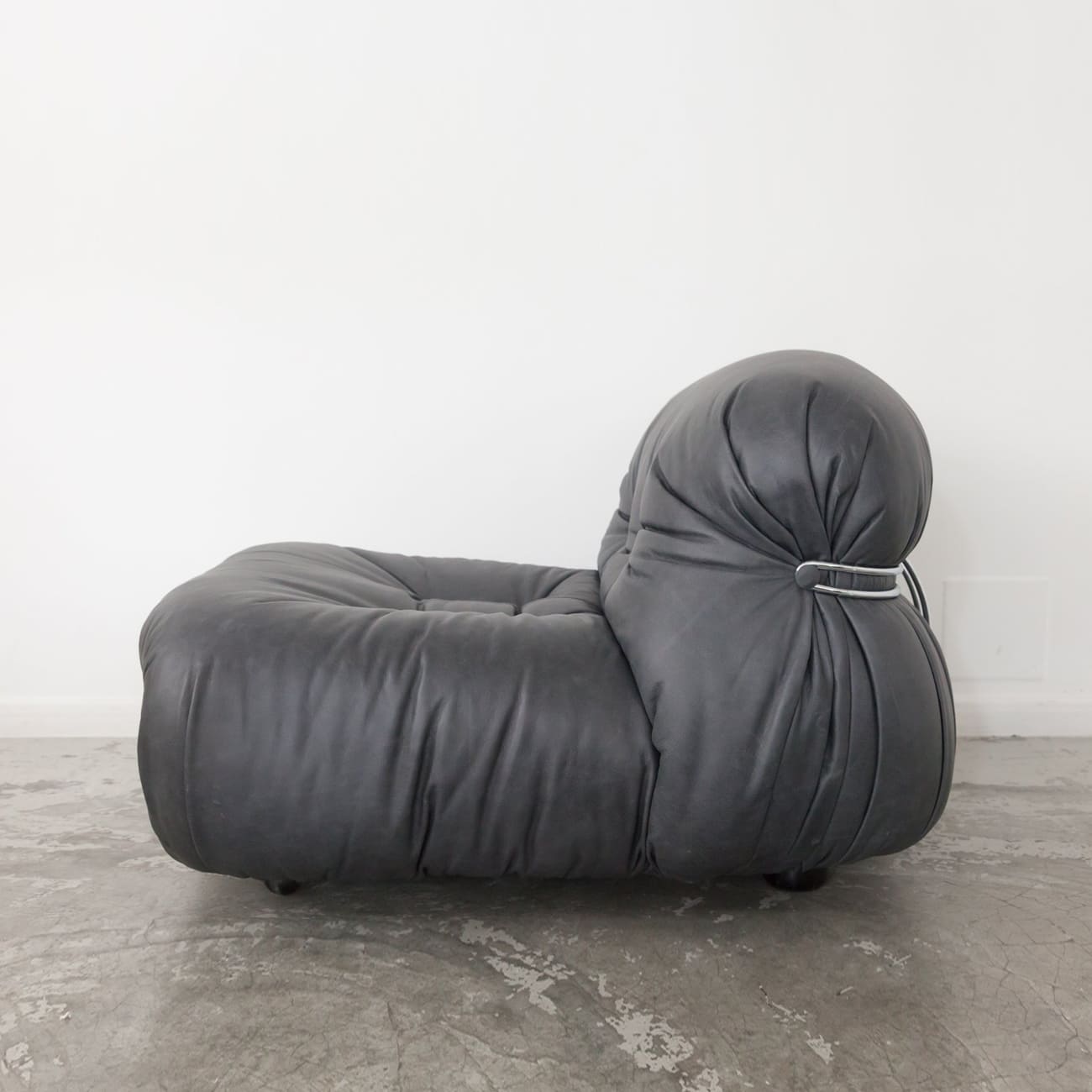 Fotel Soriana, black leather, proj. Tobia & Afra Scarpa, Cassina, Włochy, 1969.
