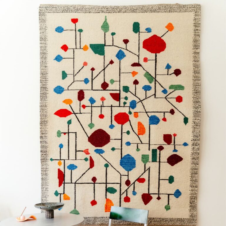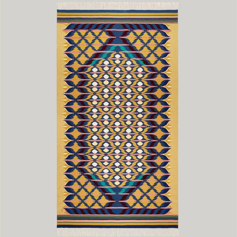 Kilim Duża Weranda, 150 × 210 cm, wełna i len, proj. Zofia Strumiłło, Splot, Polska, 2024.
