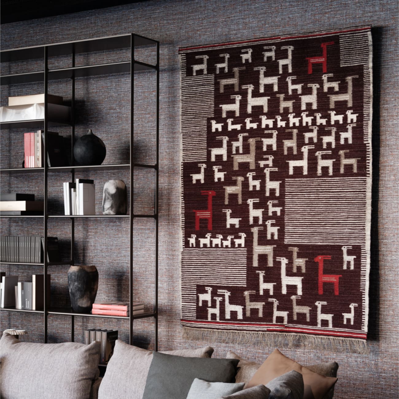 Kilim Stado, 150 × 200 cm, wełna i len, proj. Maria Bujakowa, Splot, Polska, 1964.