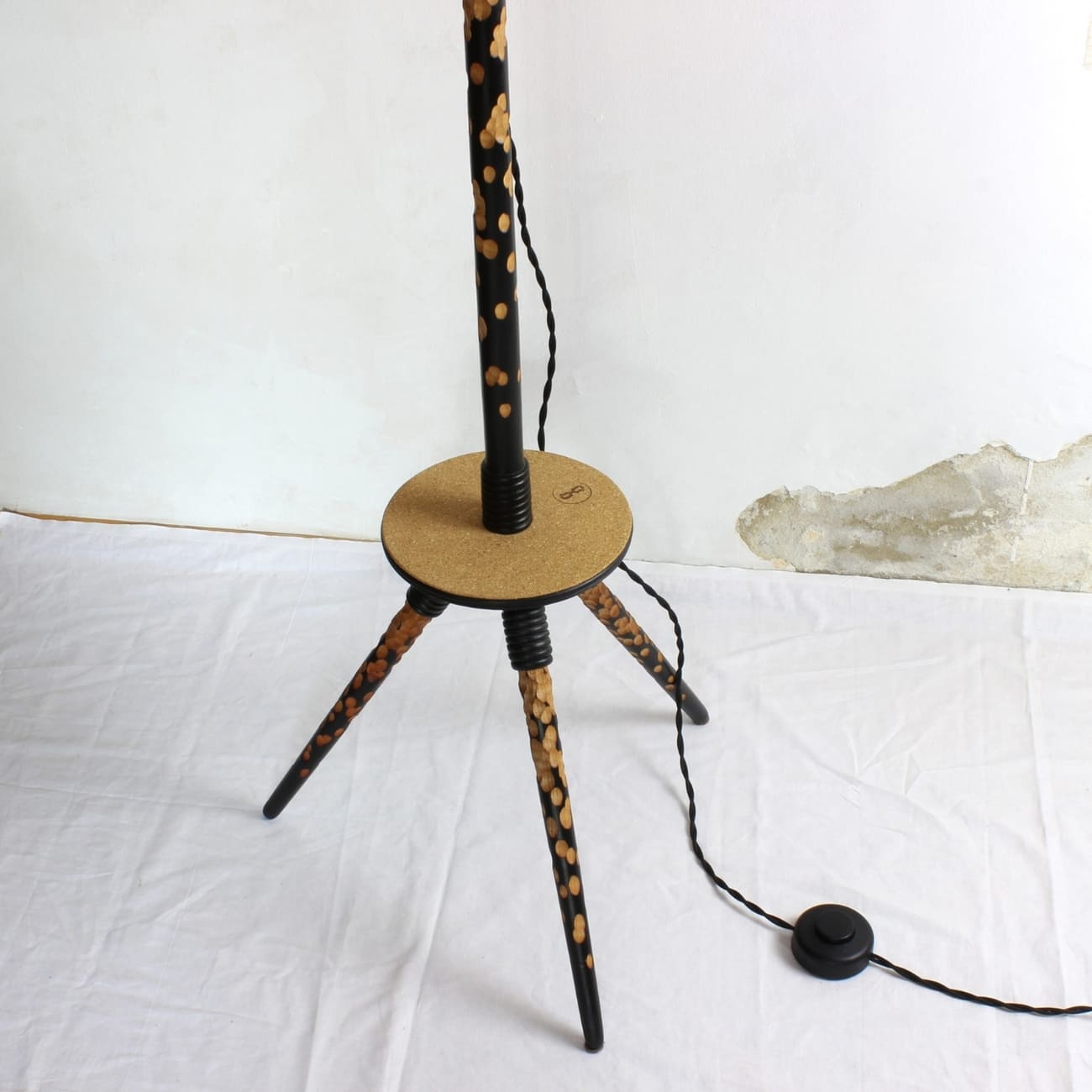Lampa podłogowa Rocket z kolekcji Erosion, drewno, proj. Gábor Góbi, Węgry, 2025.