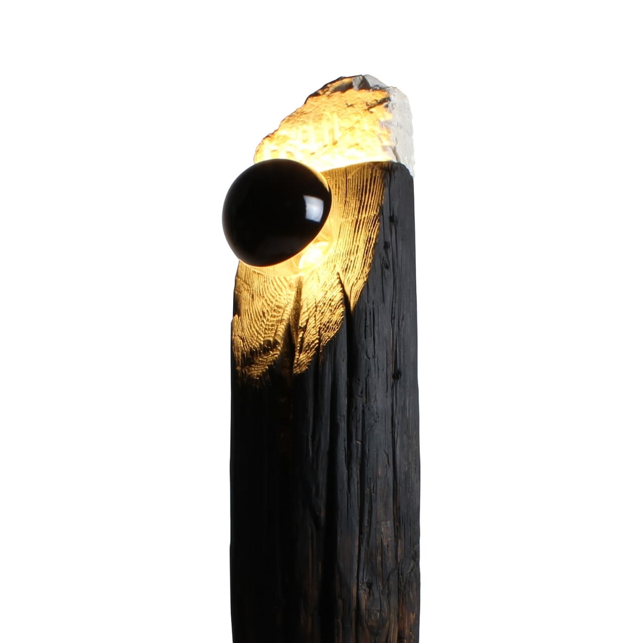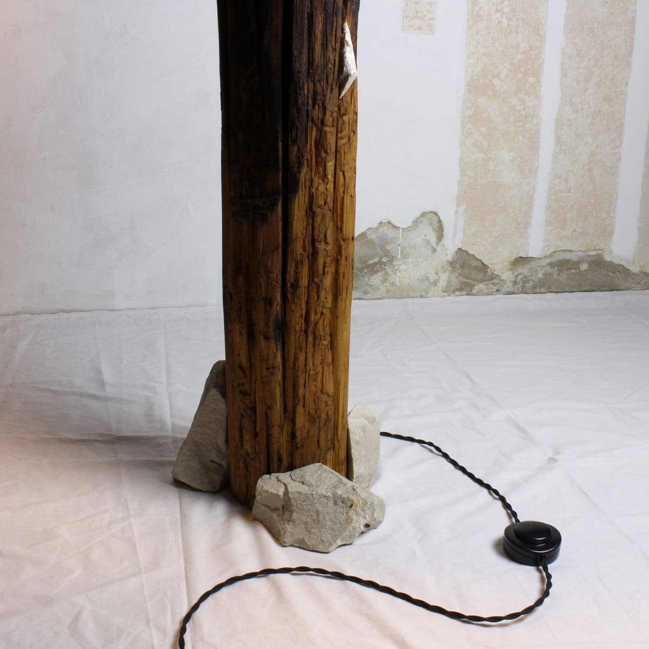 Lampa podłogowa Totem z kolekcji Raw, drewno i kamień, proj. Gábor Góbi, Węgry, 2024.