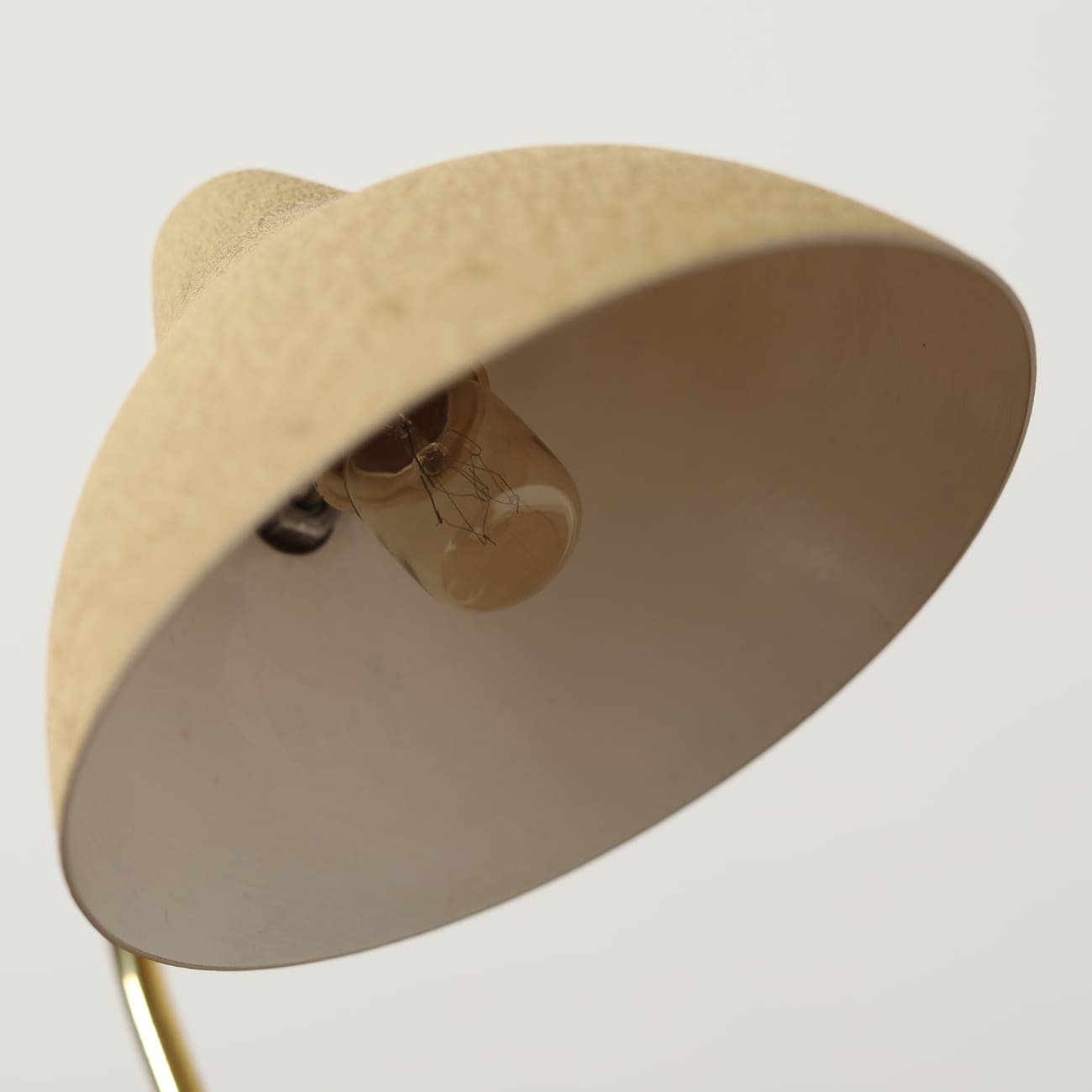 Czasza ma miękką, spokojną linię i pracuje ze światłem w sposób kontrolowany. Strumień jest kierowany i jednocześnie rozpraszany, co daje komfort użytkowania bez ostrego kontrastu. To rozwiązanie wynika z doświadczenia projektowego Kalffa, który traktował oświetlenie jako element środowiska, nie pojedynczy przedmiot. Zestawienie lakierowanej powierzchni z metalowym ramieniem wpisuje się w standardy produkcji Philipsa z tego okresu. Ograniczenie środków i klarowność konstrukcji pozwalają formie zachować aktualność mimo upływu czasu.