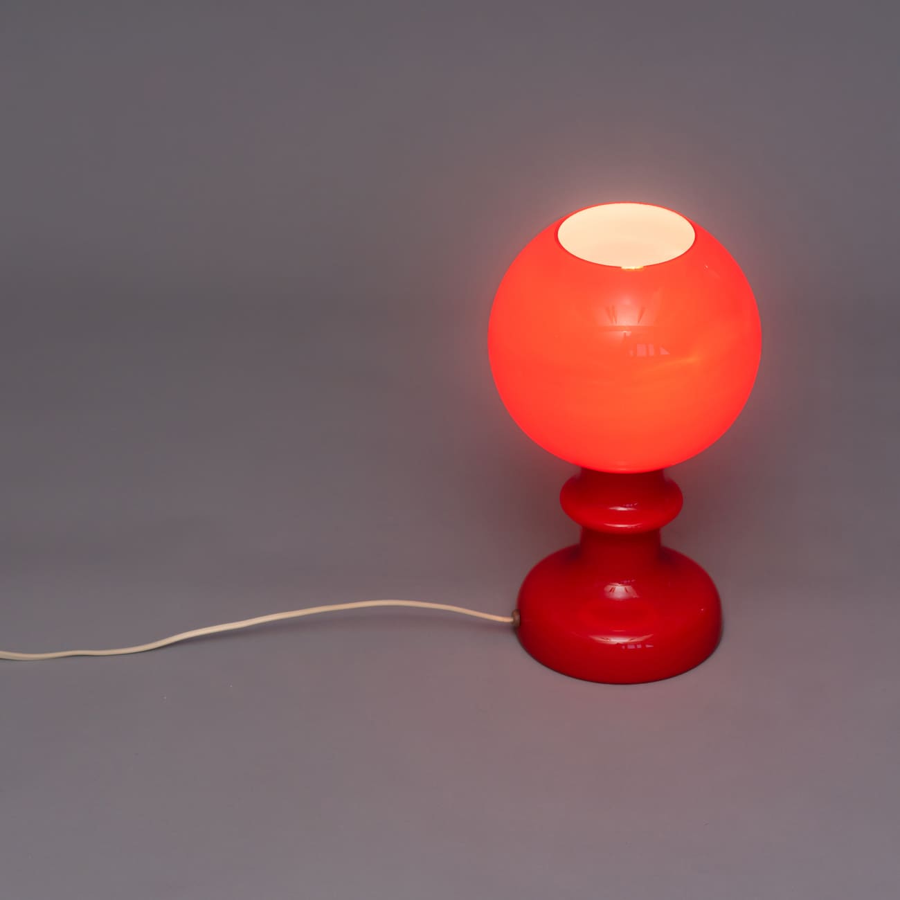Lampa stołowa z czerwonego szkła, Polam Wieliczka, Polska, lata 70.