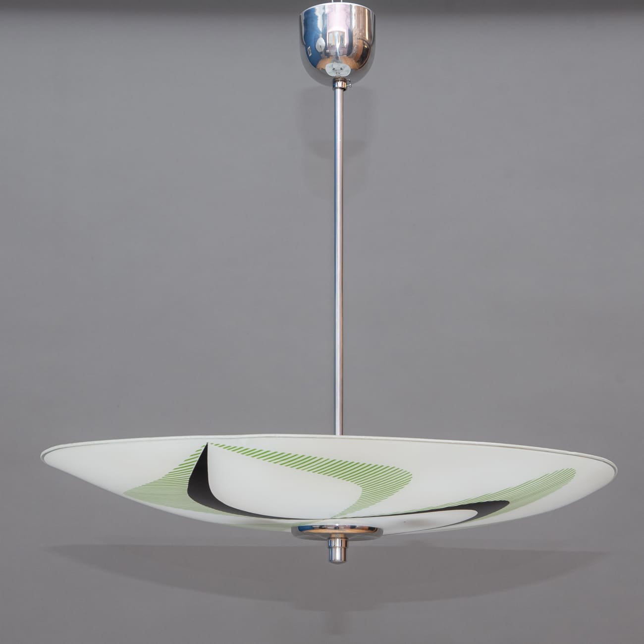 Wytworzona w Czechosłowacji w latach 60., lampa typ 1103 jest jednym z najbardziej rozpoznawalnych świadectw modernizmu użytkowego Europy Środkowej. To okres, w którym projektanci Napako konsekwentnie budowali własny język wizualny, operując śmiałą geometrią, precyzją rytmu oraz unikalną umiejętnością łączenia technik przemysłowych z rękodziełem właściwym dla tradycji czesko-słowackiego szkła. Modele z tej serii, produkowane w manufakturach, które dziś już nie istnieją, zachowały rangę artefaktów epoki, kiedy oświetlenie projektowano z myślą o długowieczności, a nie szybkim cyklu wymiany.