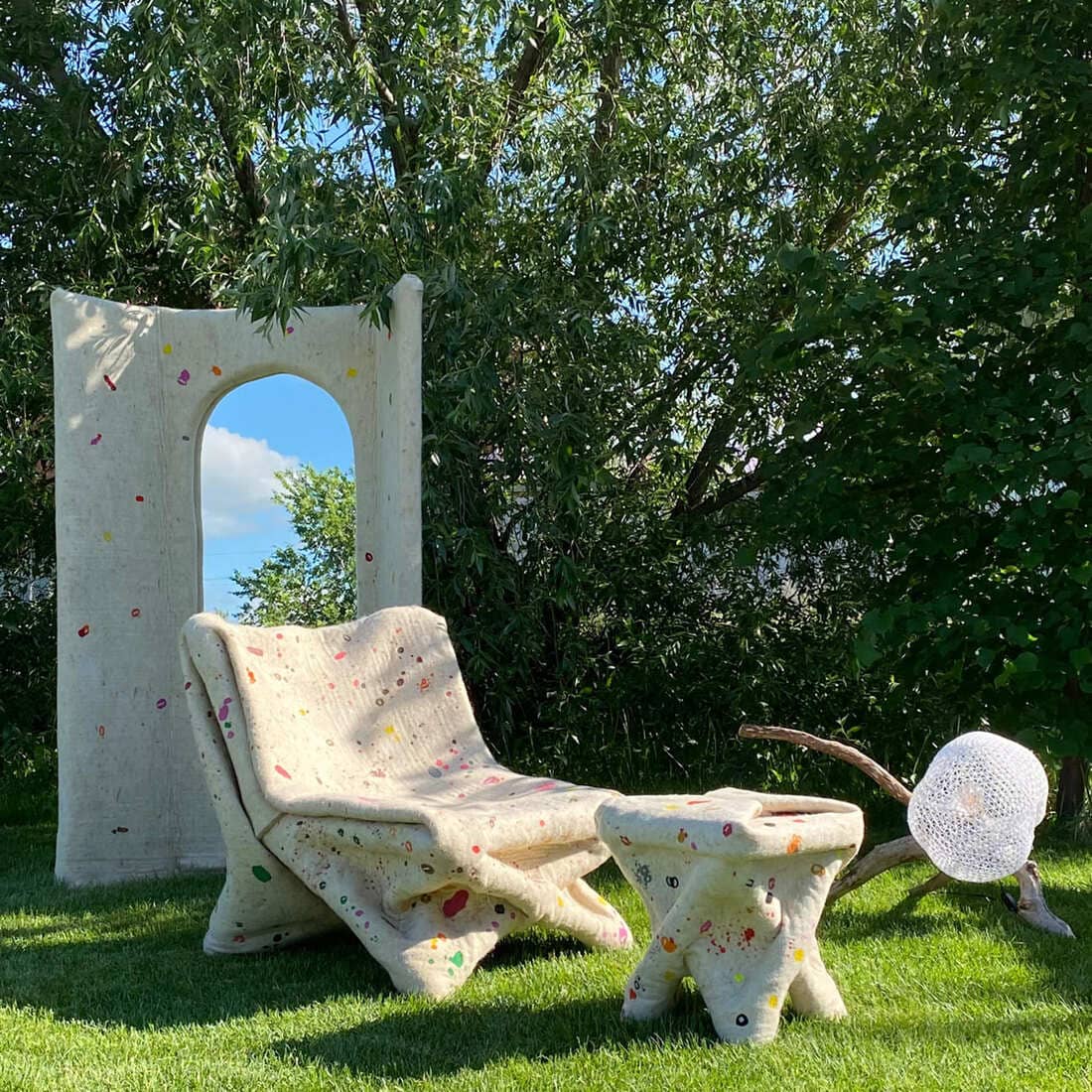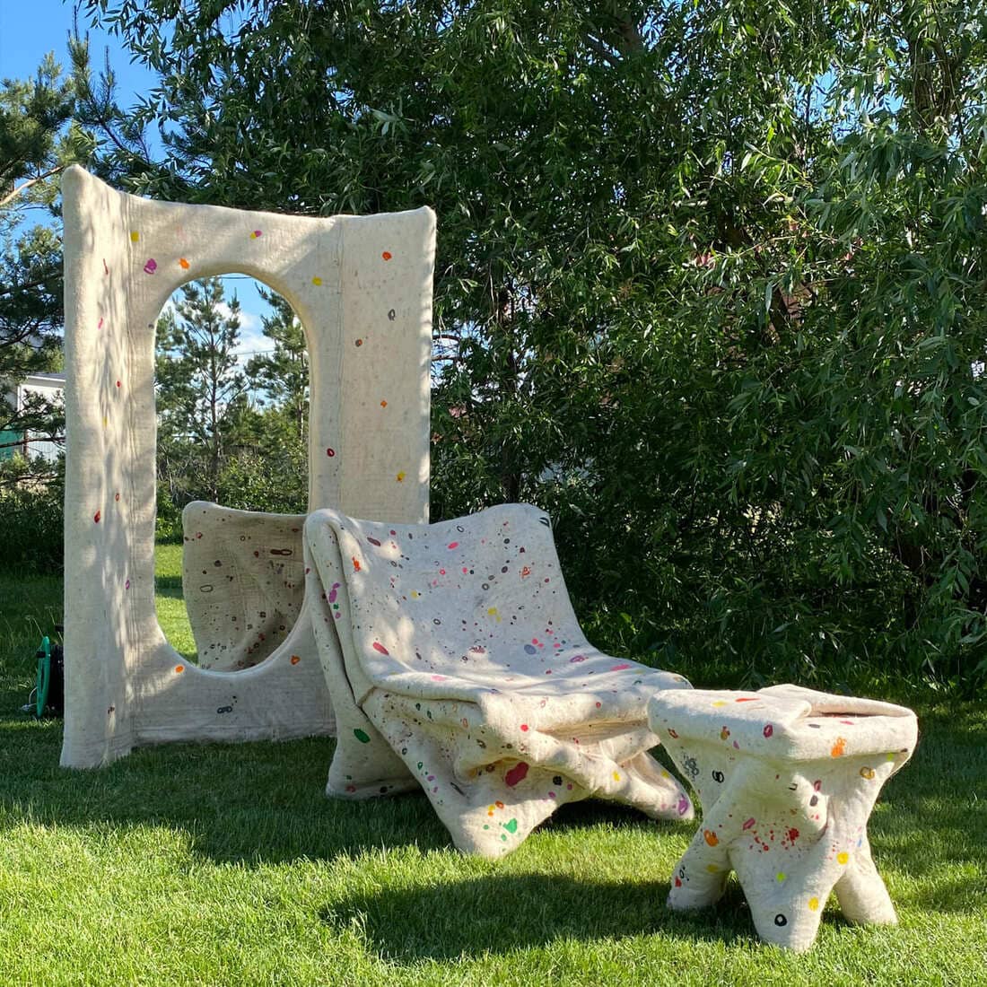 INSTRUKCJA PIELĘGNACJI I KONSERWACJI MEBLI Z FILCU I KOMPONENTÓW BIOMATERIAŁOWYCH MEBLE Z FILCU I. Regularne odkurzanie i usuwanie kurzu ● Przynajmniej raz w tygodniu odkurzaj powierzchnie filcowe za pomocą miękkiej szczotkowej nasadki odkurzacza. Szczególną uwagę zwracaj na szwy, zagięcia i trudno dostępne miejsca, gdzie może gromadzić się kurz i drobne zanieczyszczenia. ● Unikaj intensywnego pocierania, aby nie naruszyć struktury włókien. II. Usuwanie plam i zabrudzeń ● W przypadku rozlania płynu natychmiast osusz plamę, używając czystej, suchej, białej ściereczki lub chłonnych ręczników papierowych. ● Do delikatnych zabrudzeń użyj lekko wilgotnej gąbki lub ściereczki z mikrofibry, zwilżonej letnią wodą. ● Trudniejsze plamy można usuwać przy użyciu specjalistycznych środków do czyszczenia wełny lub filcu. Zawsze testuj produkt na niewidocznym fragmencie materiału przed pełnym użyciem. ● Unikaj agresywnych detergentów, wybielaczy i środków na bazie alkoholu, które mogą osłabić włókna filcu i zmienić jego kolor. ● Nie pocieraj plamy zbyt mocno, aby nie naruszyć struktury włókien – stosuj delikatne ruchy tamponujące. III. Ochrona przed odkształceniami i filcowaniem się materiału ● Nie umieszczaj ciężkich przedmiotów na filcowych powierzchniach przez dłuższy czas, aby zapobiec trwałym odkształceniom. ● Regularnie zmieniaj położenie poduszek i elementów filcowych, aby zapobiegać miejscowemu ugniataniu się materiału. ● W przypadku powstawania zmechaceń można je usunąć specjalnym golarką do tkanin, unikając zbyt intensywnego dociskania. IV. Ochrona przed wilgocią i pleśnią ● Filc jest higroskopijny i może chłonąć wilgoć, dlatego należy unikać umieszczania mebli filcowych w pomieszczeniach o wysokiej wilgotności. ● Jeśli filc zostanie zamoczony, osusz go w przewiewnym miejscu w temperaturze pokojowej, unikając bezpośredniego działania źródeł ciepła, takich jak grzejniki czy suszarki. ● W przypadku długotrwałego kontaktu z wilgocią może pojawić się pleśń – jej pierwsze oznaki należy usuwać łagodnym roztworem octu z wodą (1:3), stosując go punktowo. OBIEKTY Z INNYCH BIOMATERIAŁÓW I. Elementy drewniane i biodegradowalne kompozyty ● Do czyszczenia używaj suchej lub lekko wilgotnej ściereczki, najlepiej z bawełny lub mikrofibry. ● Nie stosuj nadmiaru wody – nadmierna wilgoć może prowadzić do pęcznienia drewna lub degradacji biomateriałów. ● Raz na kilka miesięcy warto aplikować naturalne oleje roślinne (np. lniany lub wosk pszczeli), aby zabezpieczyć powierzchnię przed przesuszeniem. II. Powierzchnie z naturalnych włókien i tkanin biomateriałowych ● Regularnie odkurzaj tkaniny wykonane z naturalnych włókien (np. lnu, konopi, bambusa), aby usunąć kurz i zapobiec osadzaniu się zabrudzeń. ● Do czyszczenia lekkich zabrudzeń stosuj łagodne środki czyszczące na bazie wody, unikając silnych detergentów i wybielaczy. ● Unikaj długotrwałego wystawiania materiałów na działanie promieni UV, które mogą powodować blaknięcie i osłabienie struktury włókien. III. Elementy biodegradowalne i PLA (bioplastik z kukurydzy) ● Elementy wykonane z biodegradowalnych kompozytów (np. PLA) powinny być czyszczone wyłącznie suchą ściereczką lub wilgotną gąbką. ● Unikaj wysokich temperatur – PLA jest wrażliwe na ciepło i może się odkształcać powyżej 60°C. ● Nie stosuj silnych środków chemicznych ani alkoholi, które mogą osłabić strukturę materiału. IV. Profesjonalna konserwacja i okresowe zabiegi pielęgnacyjne ● Raz na 12–24 miesiące warto skorzystać z profesjonalnej usługi czyszczenia, zwłaszcza w przypadku mocno eksploatowanych mebli. ● W przypadku trudnych do usunięcia plam, przetarć czy zmian w fakturze filcu, warto skonsultować się ze specjalistą ds. konserwacji tkanin.