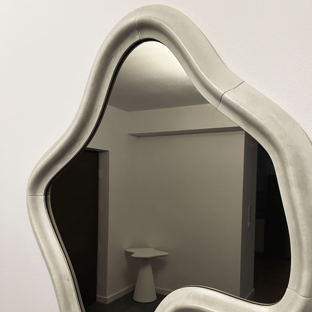 Lustro ścienne Ossis, naturalny pergamin kozi, proj. M. Palucki, Francja, 2024.