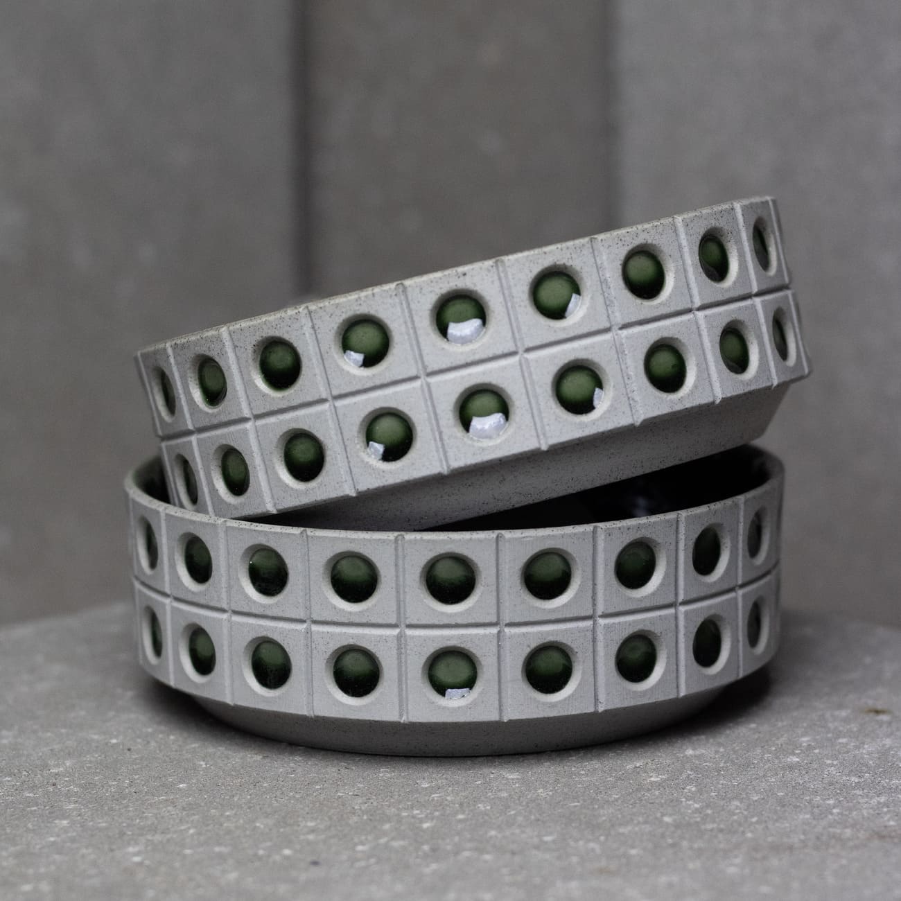 Miska Green Brutalist Grid, Ø 14,5 cm, proj. Aleksander Kozera, Yird Studio, Polska, 2025.