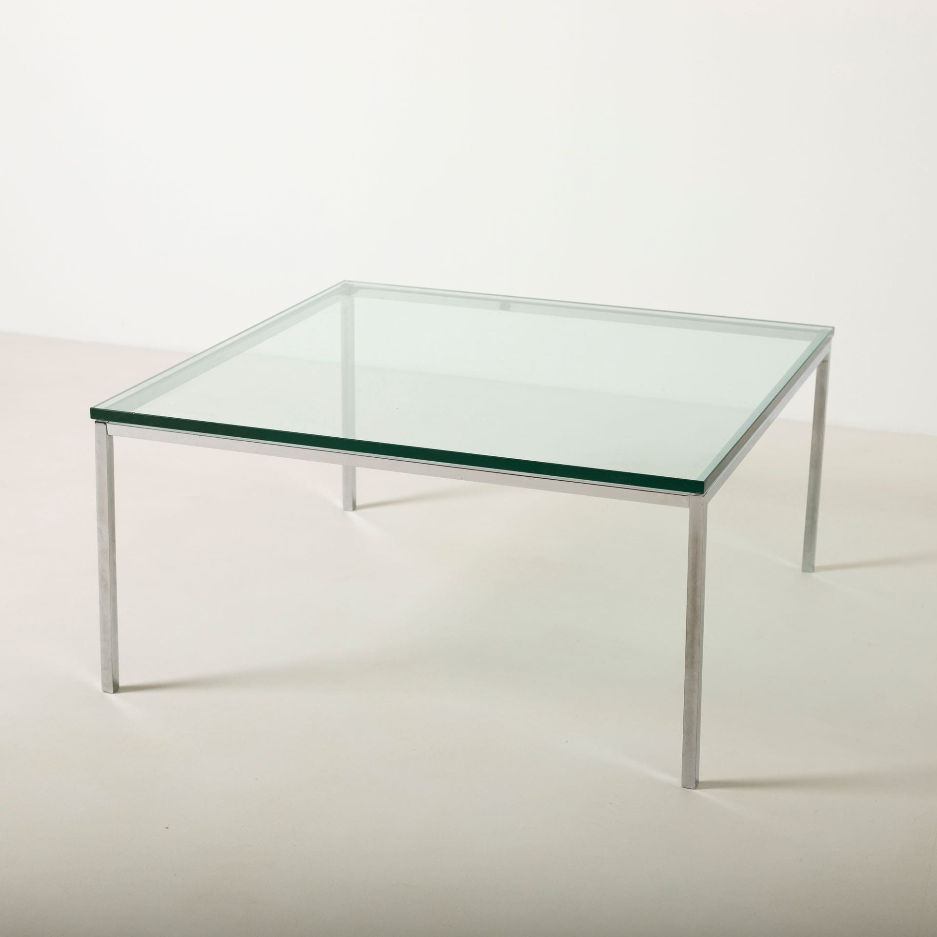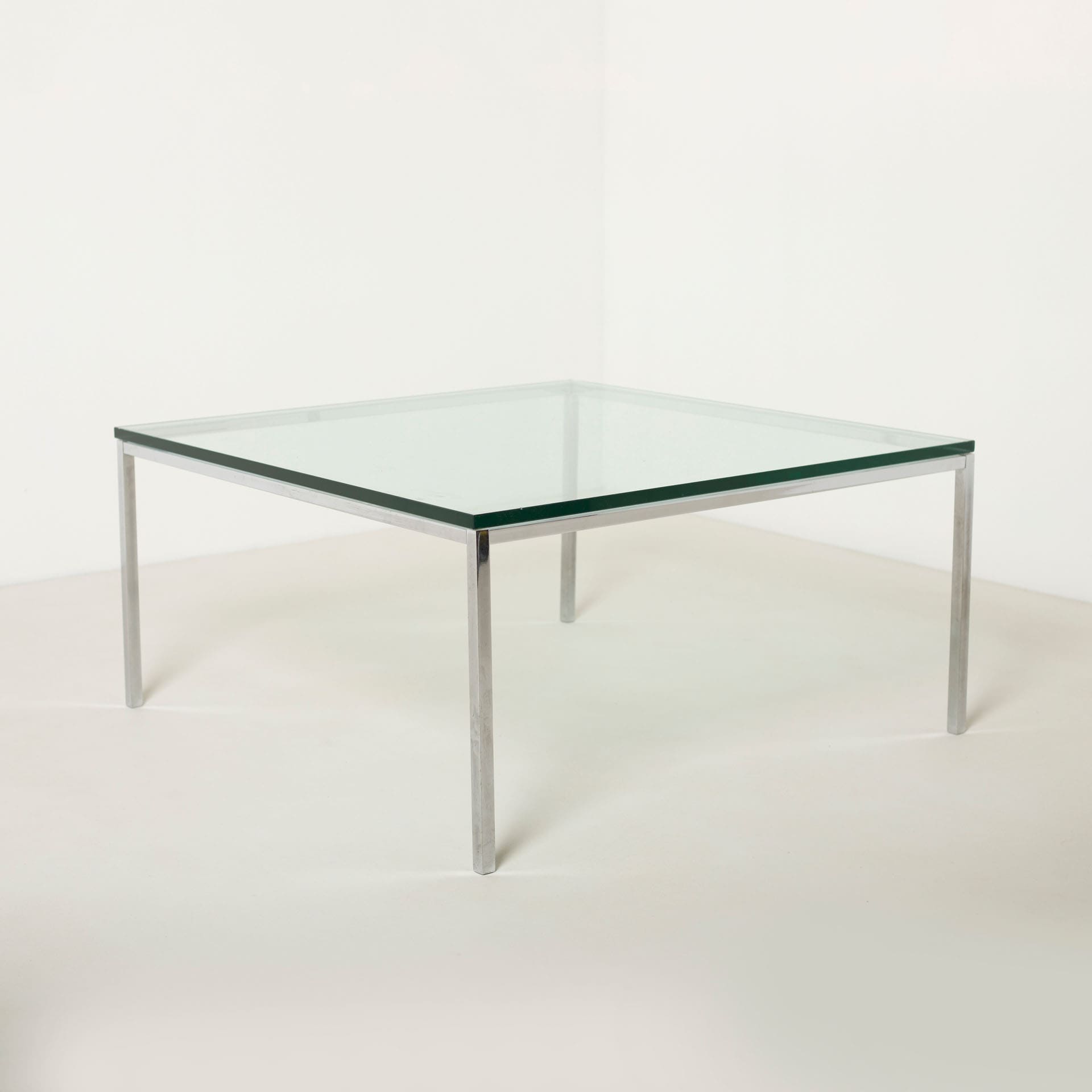 Prezentowany stolik kawowy powstał w Niemczech w latach osiemdziesiątych i stanowi przykład modernistycznego podejścia do projektowania mebli, w którym konstrukcja i materiał pozostają głównymi elementami kompozycji. Minimalistyczna forma opiera się na prostym zestawieniu chromowanego stelaża i grubego szklanego blatu.