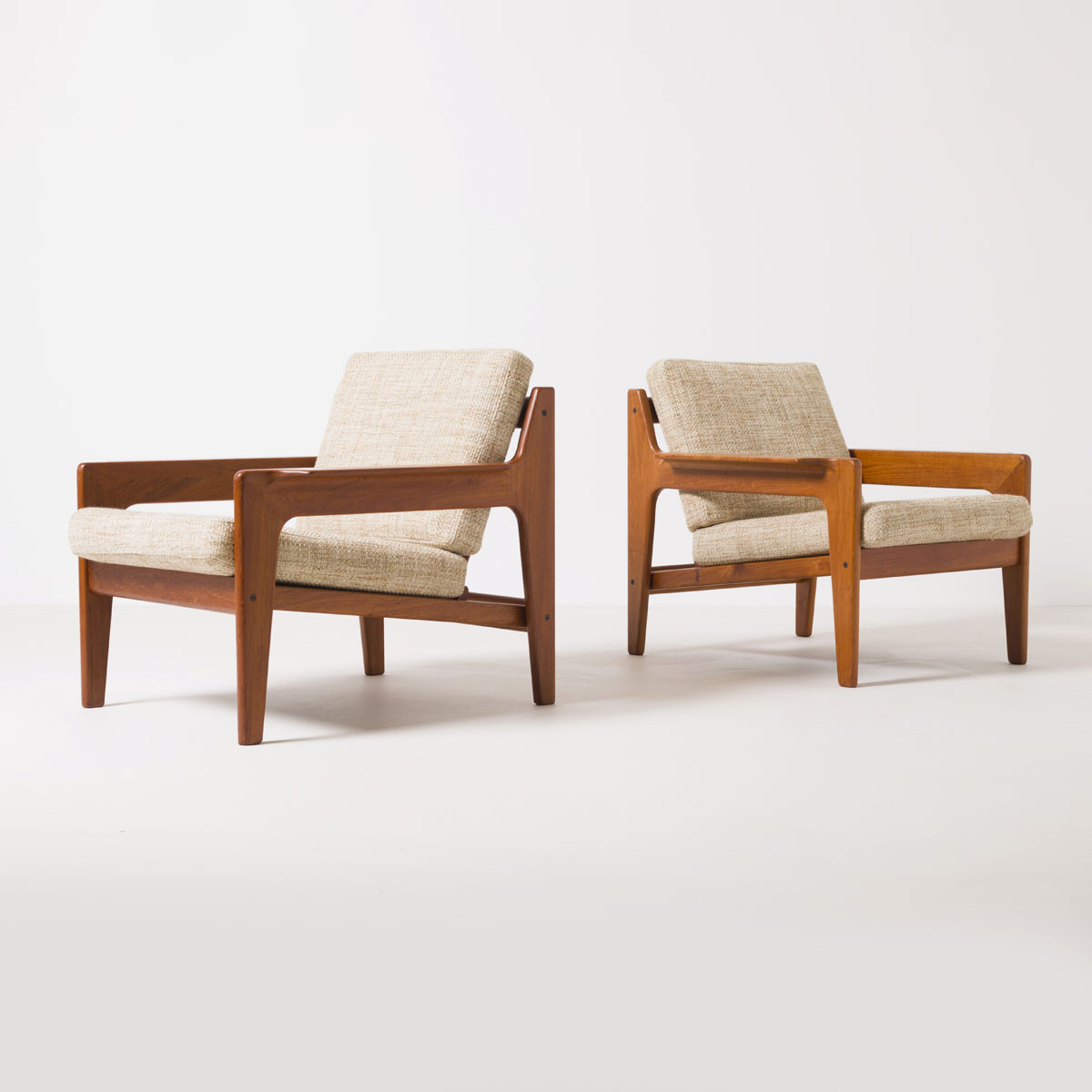 Para foteli zaprojektowanych przez Arne Wahl Iversena, jednego z kluczowych przedstawicieli duńskiego modernizmu lat 60., którego twórczość sytuowała się pomiędzy rzemiosłem a racjonalnym projektowaniem przemysłowym. Modele powstające dla wytwórni Komfort były adresowane do nowoczesnych, miejskich wnętrz i odpowiadały na rosnące wówczas zapotrzebowanie na meble o wysokiej kulturze użytkowej, ale pozbawione formalnej demonstracyjności.