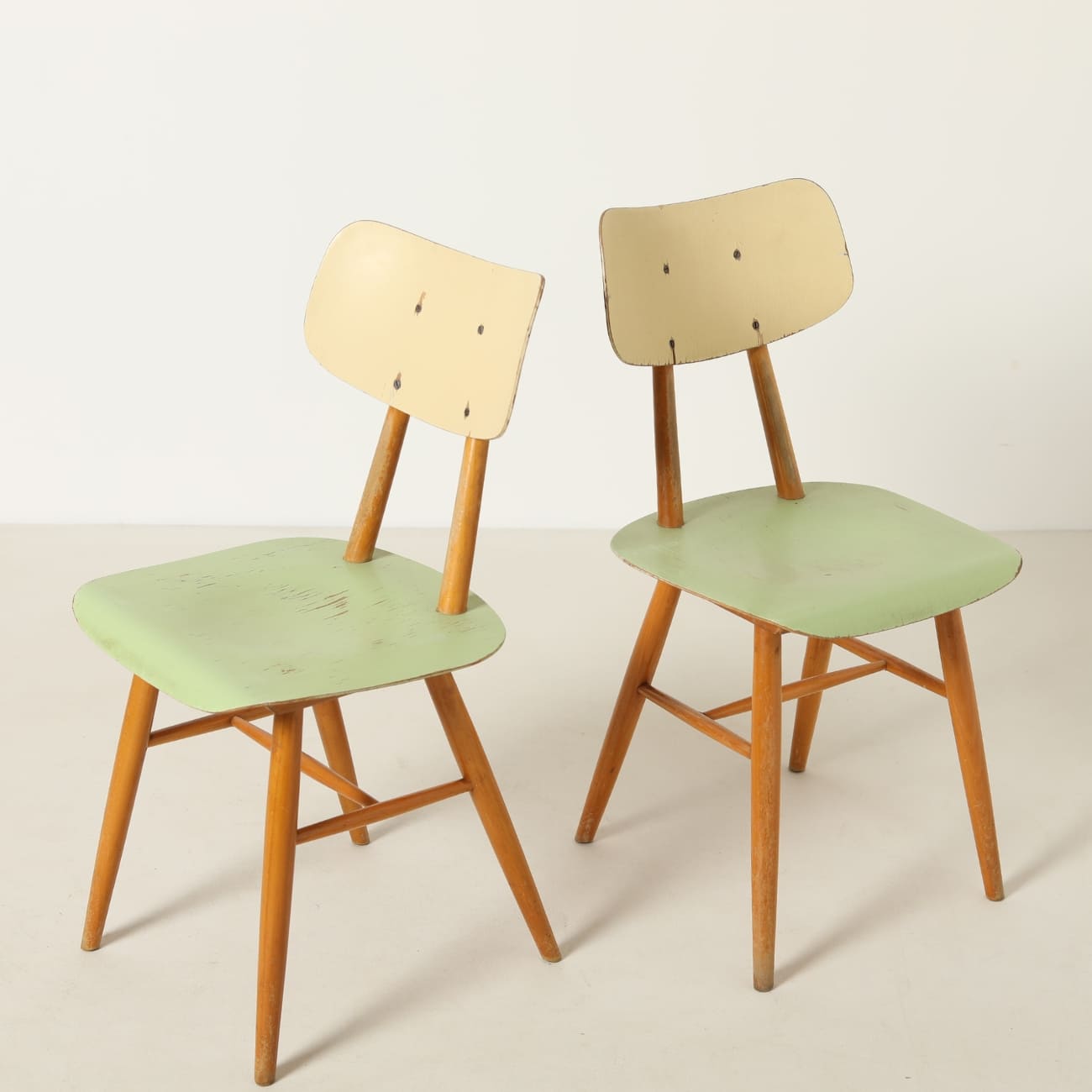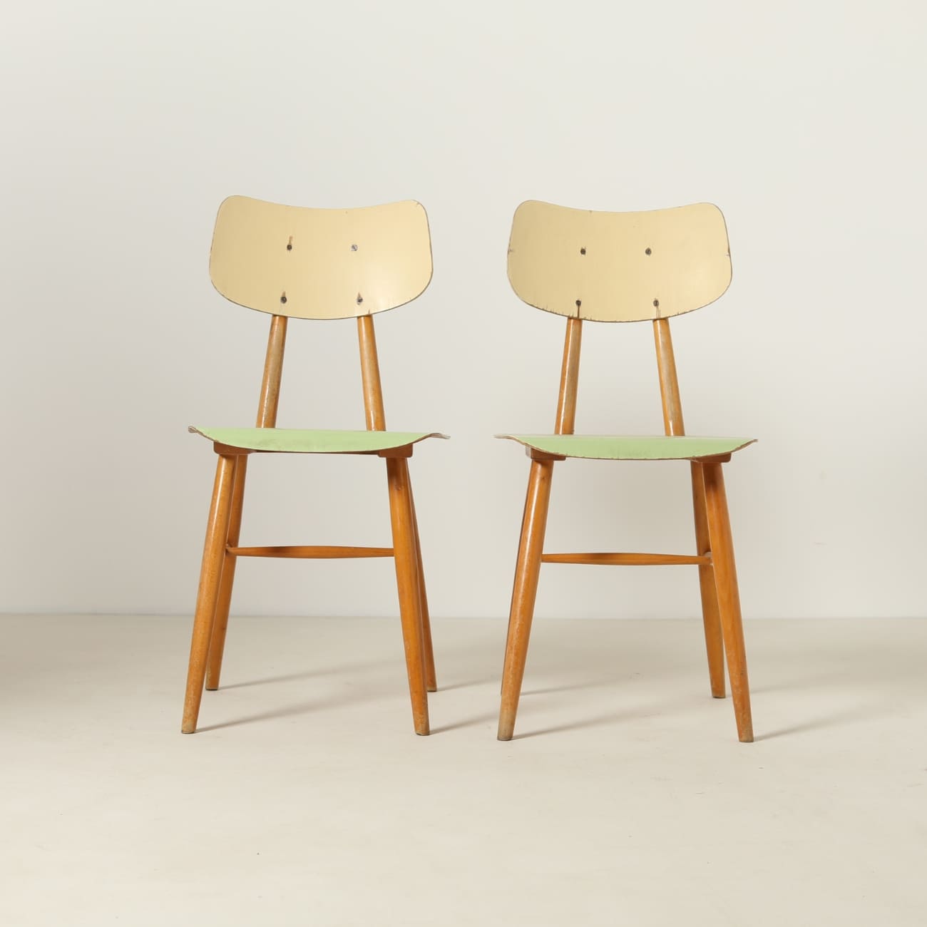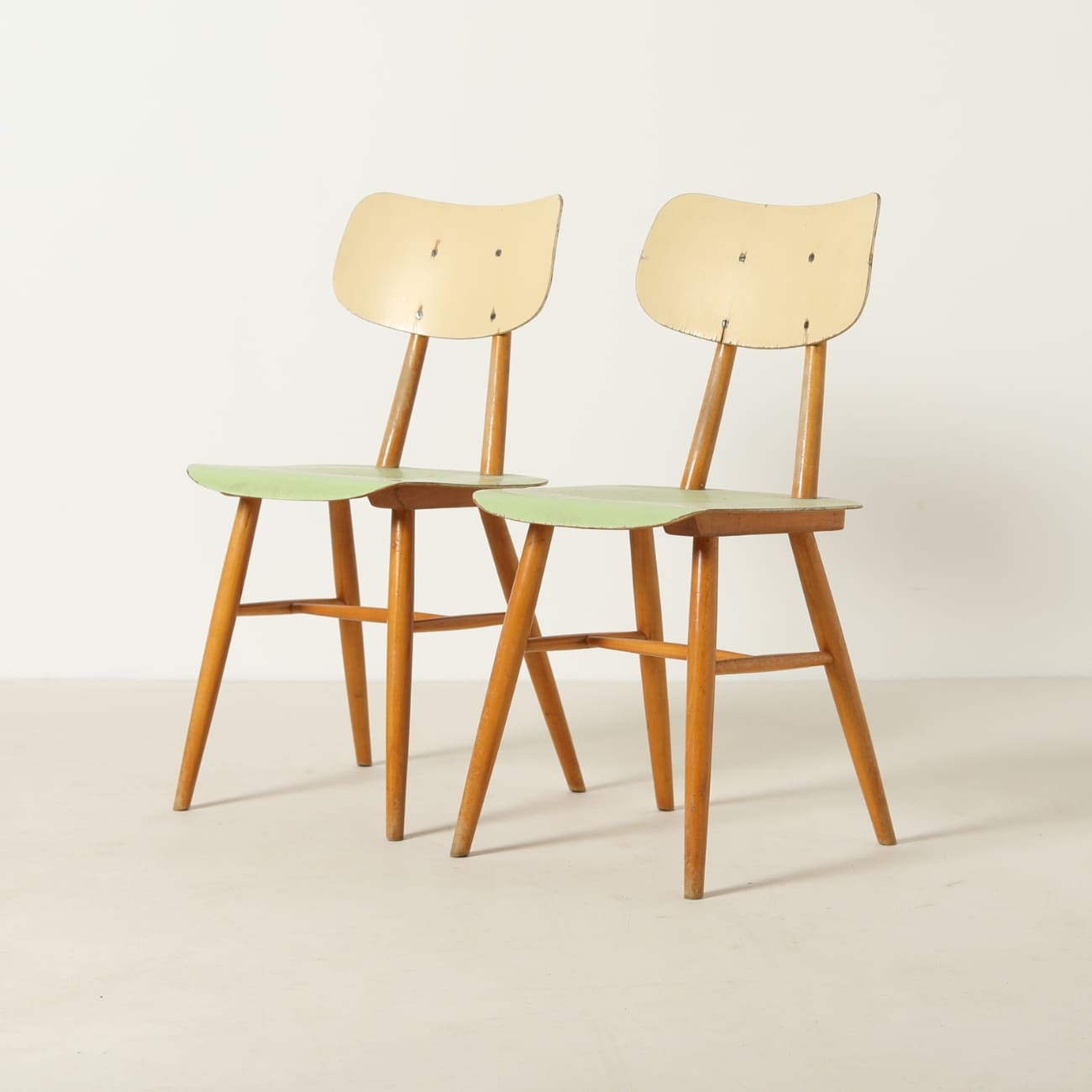 Para krzeseł bukowych ze sklejką malowaną, TON, Czechosłowacja, lata 60.