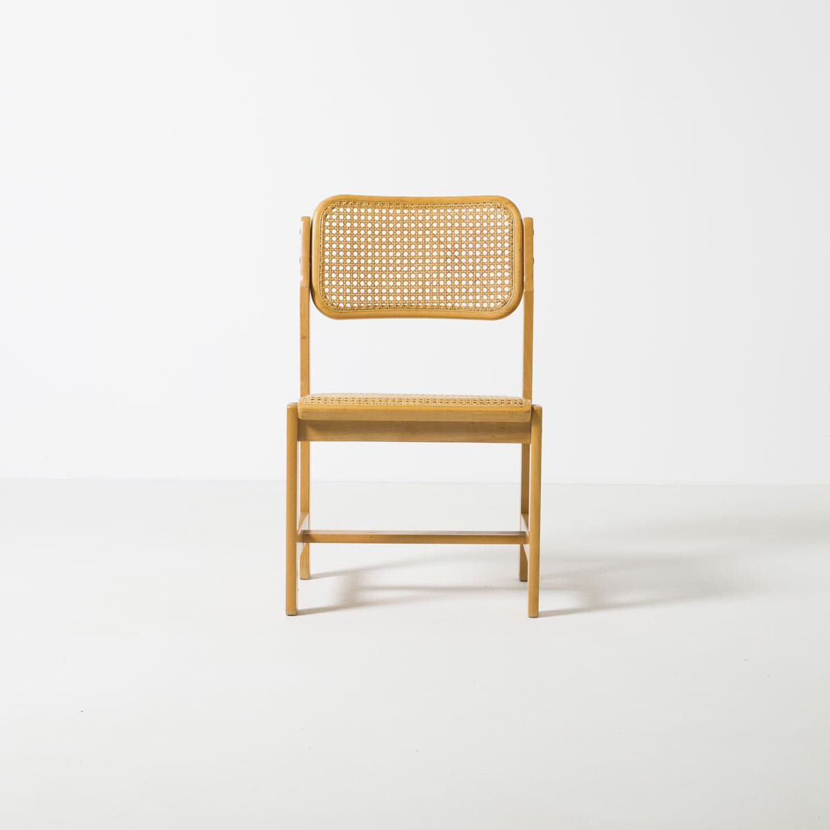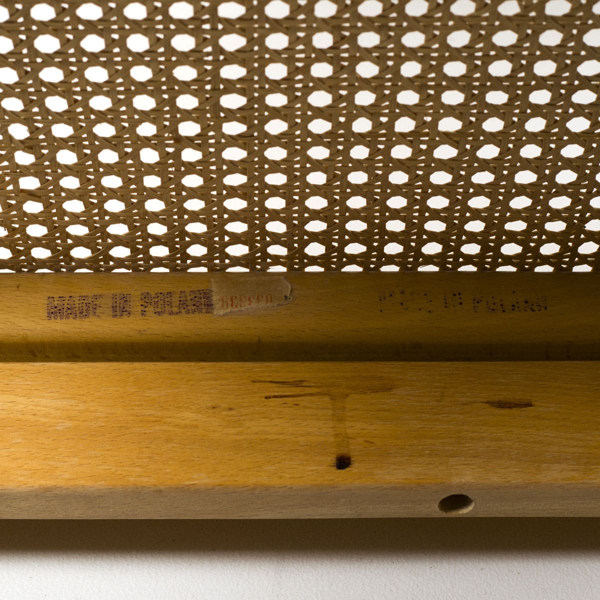 Konstrukcja krzeseł oparta jest na ramie z litego buku, z zastosowaniem plecionki wiedeńskiej na siedzisku i oparciu. To rozwiązanie, choć mające długą tradycję, w latach 70. było chętnie wykorzystywane ze względu na lekkość wizualną, dobrą wentylację oraz komfort użytkowania. Proporcje krzeseł są wyważone, a forma pozbawiona dekoracyjnych gestów, co dobrze oddaje pragmatyczny charakter polskiego wzornictwa tego okresu.