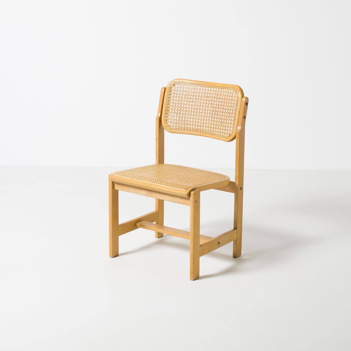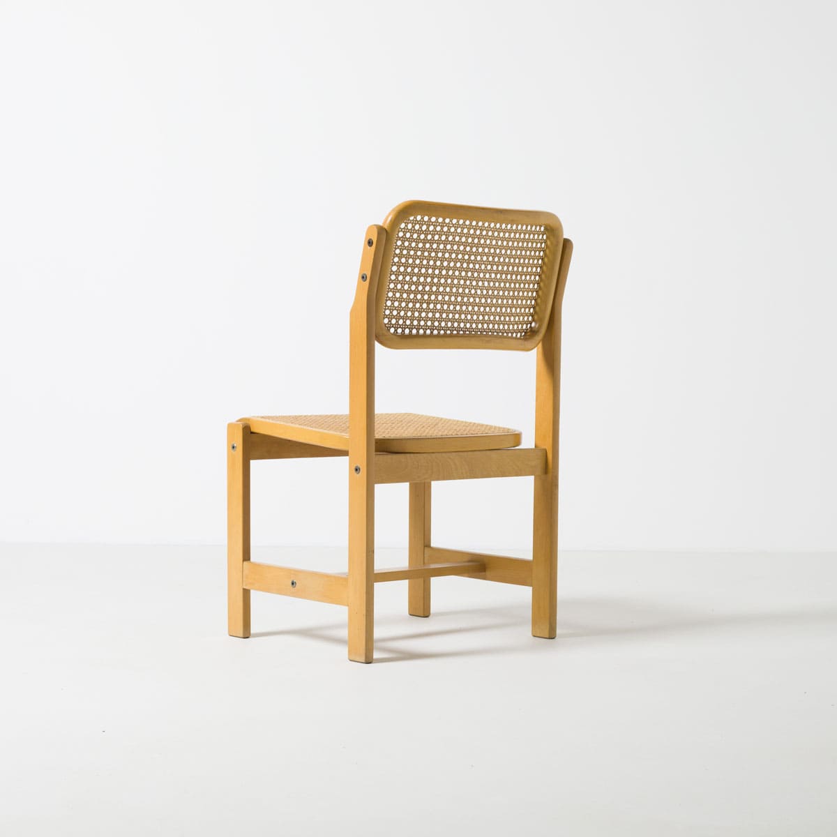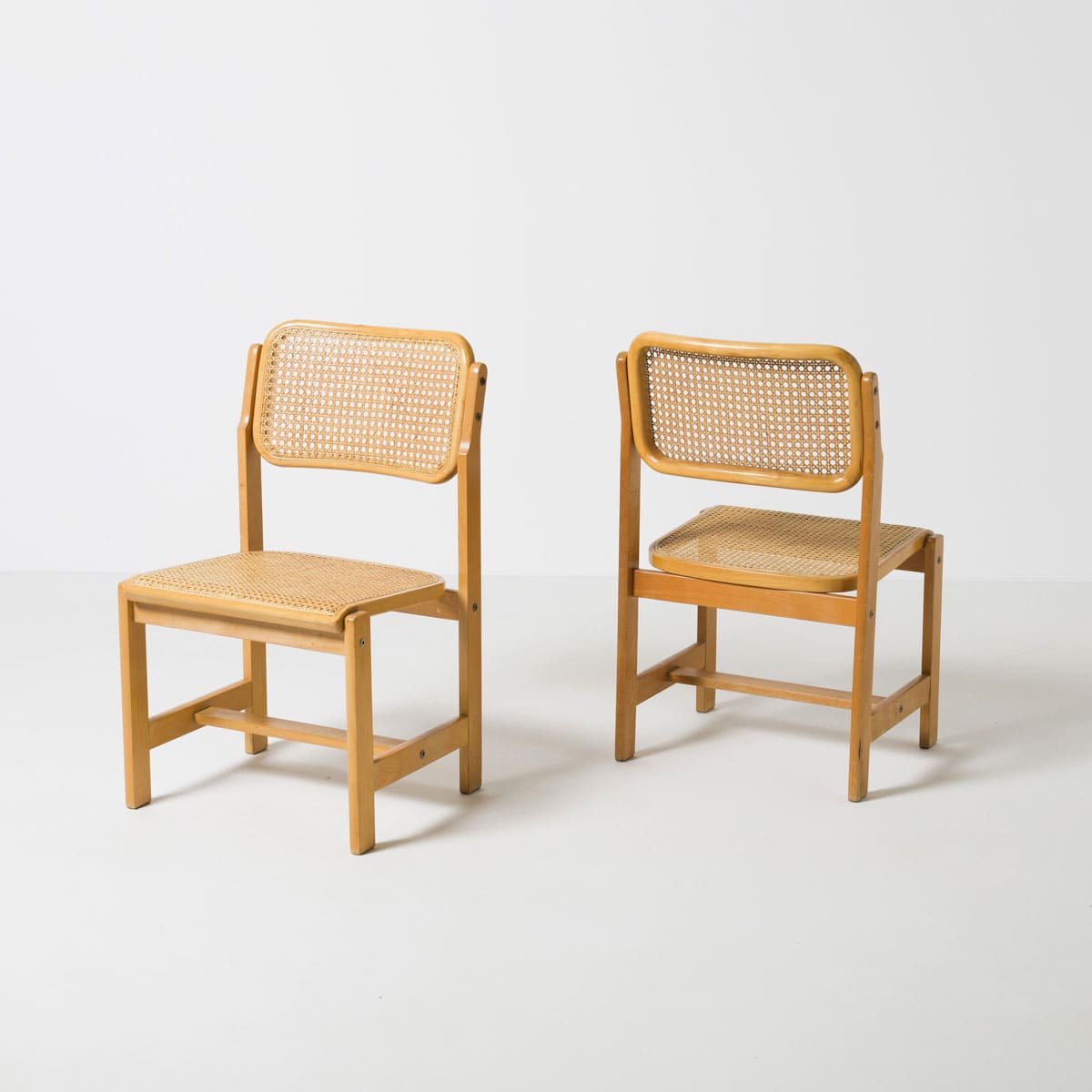 Para krzeseł jadalnianych zaprojektowanych przez Zenon Bączyk i wyprodukowanych przez Gościcińskie Fabryki Mebli w latach 70. To przykład racjonalnego, użytkowego wzornictwa powstającego w Polsce w okresie późnego modernizmu, kiedy projektowanie mebli podporządkowane było trwałości, prostocie konstrukcji oraz efektywności produkcyjnej.