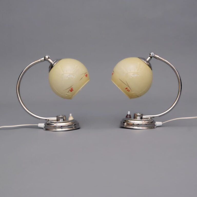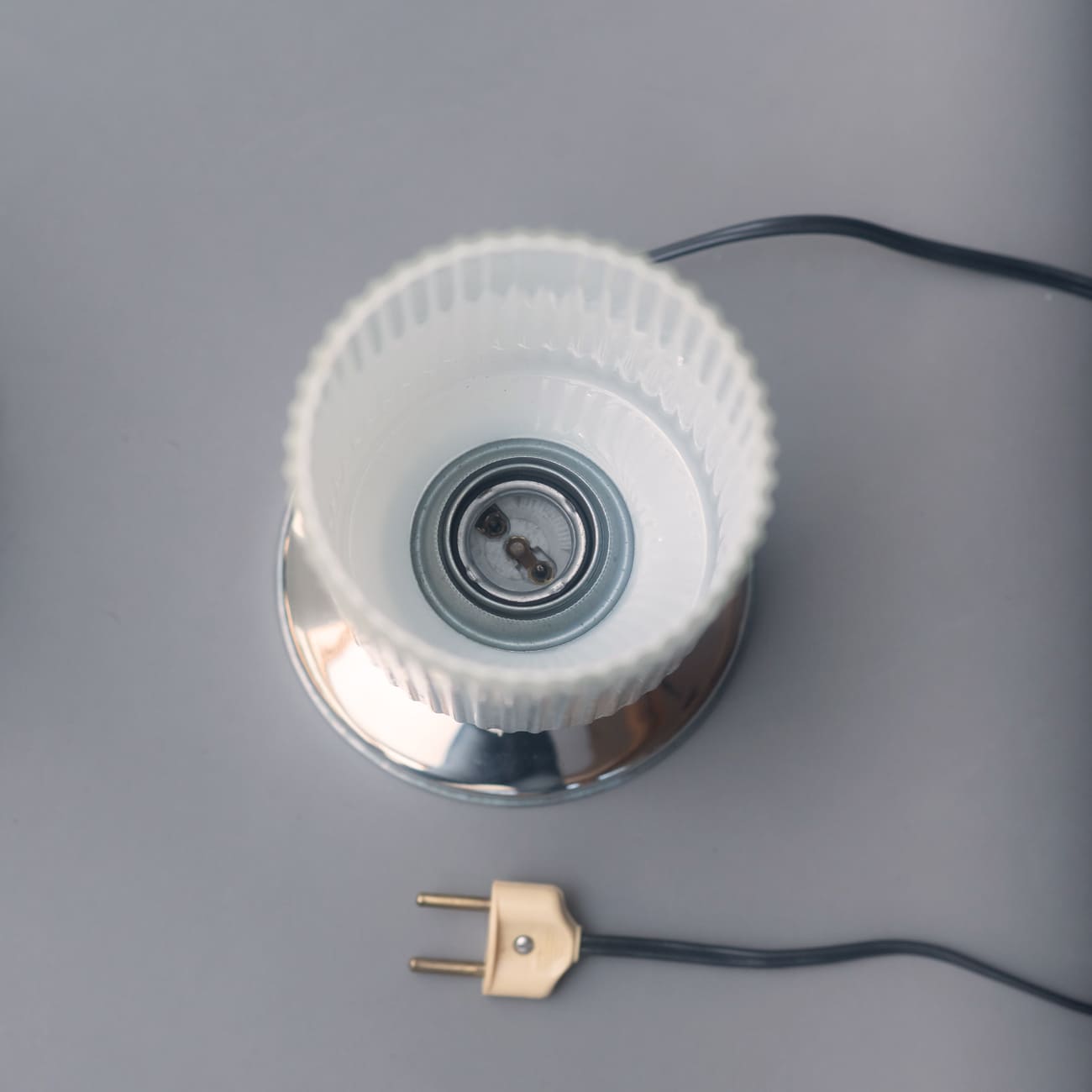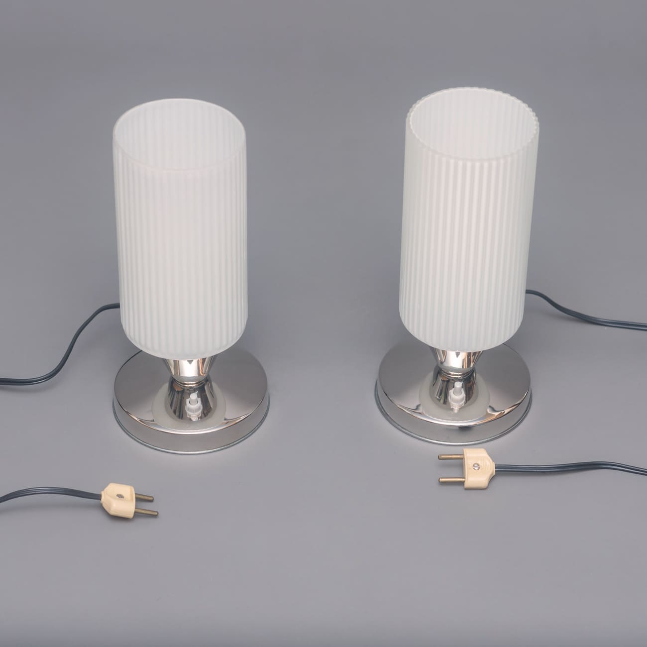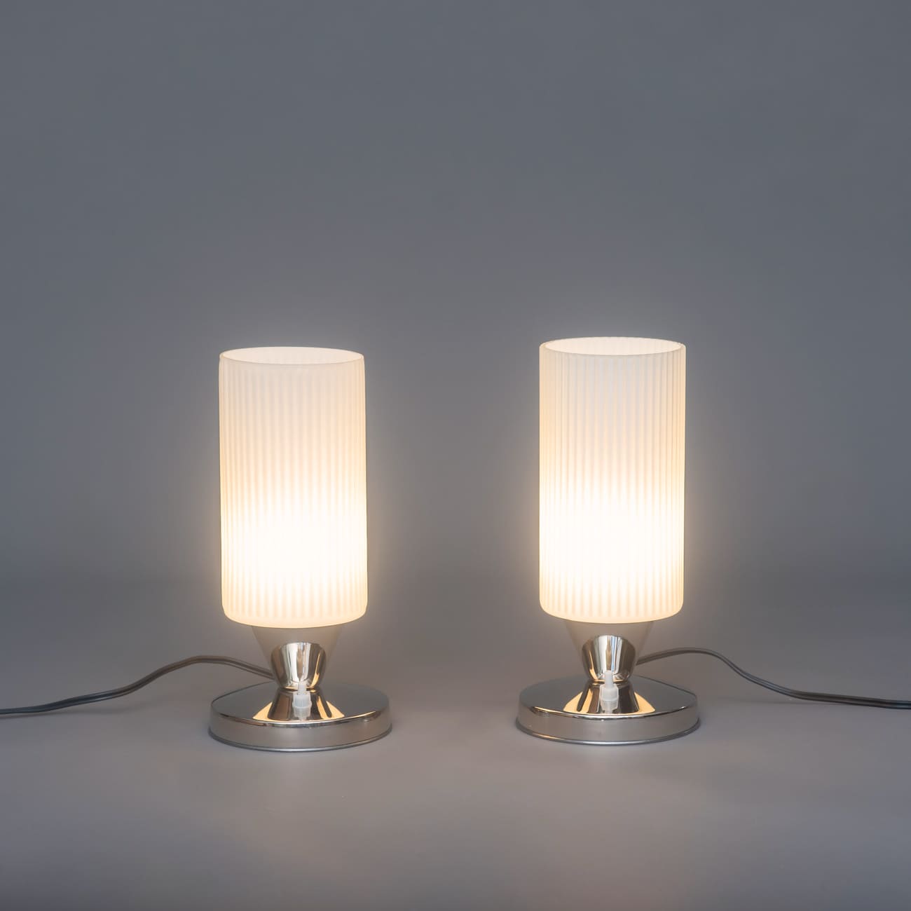 Para lampek stołowych z ryflowanymi kloszami, typ S-5, Elektrometal Wieliczka, Polska, 1964.