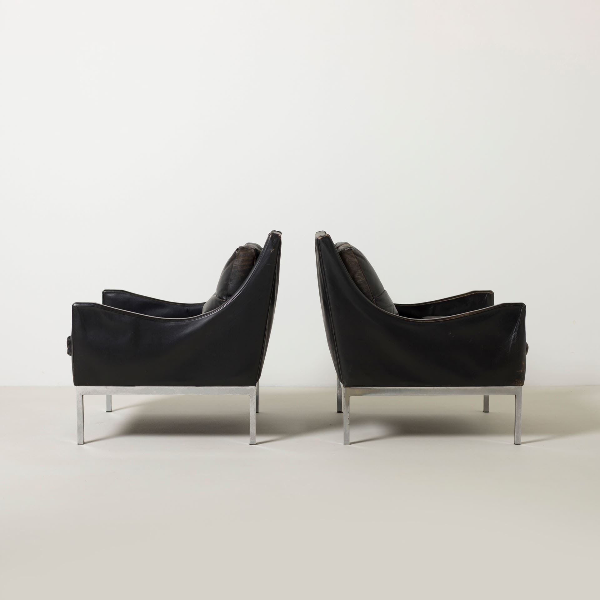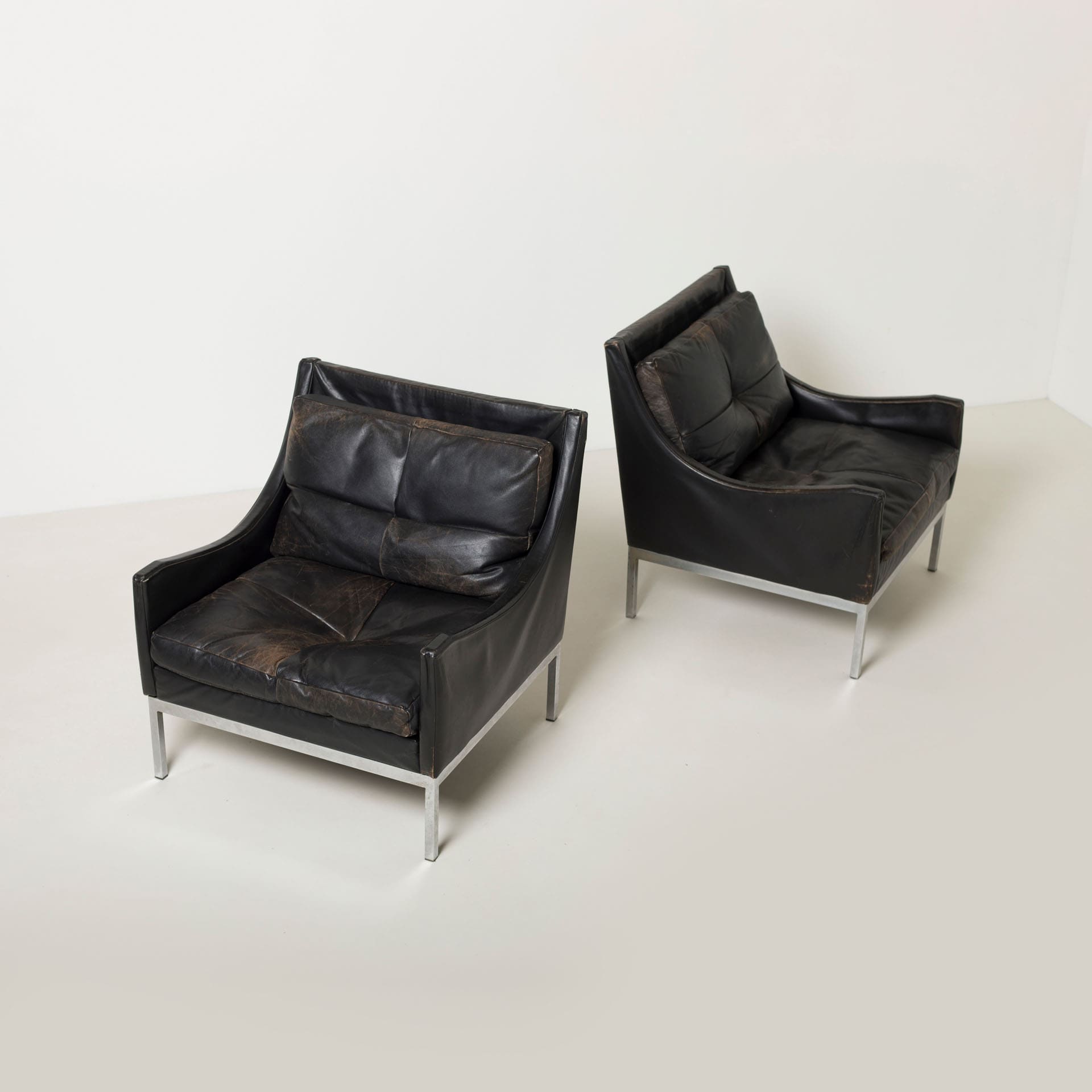 Prezentowana para foteli powstała w Niemczech w latach sześćdziesiątych, w okresie intensywnego rozwoju europejskiego wzornictwa powojennego. Projekty z tego czasu łączyły modernistyczną dyscyplinę konstrukcji z rosnącym zainteresowaniem komfortem użytkownika. W efekcie powstawały meble o wyraźnej architekturze formy, ale jednocześnie miękkie i przyjazne w odbiorze.