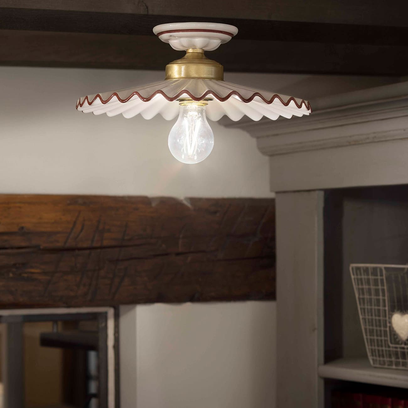Plafoniera / lampa sufitowa L’AQUILA C013, ceramika i mosiądz, Ferroluce, Włochy, 2022.