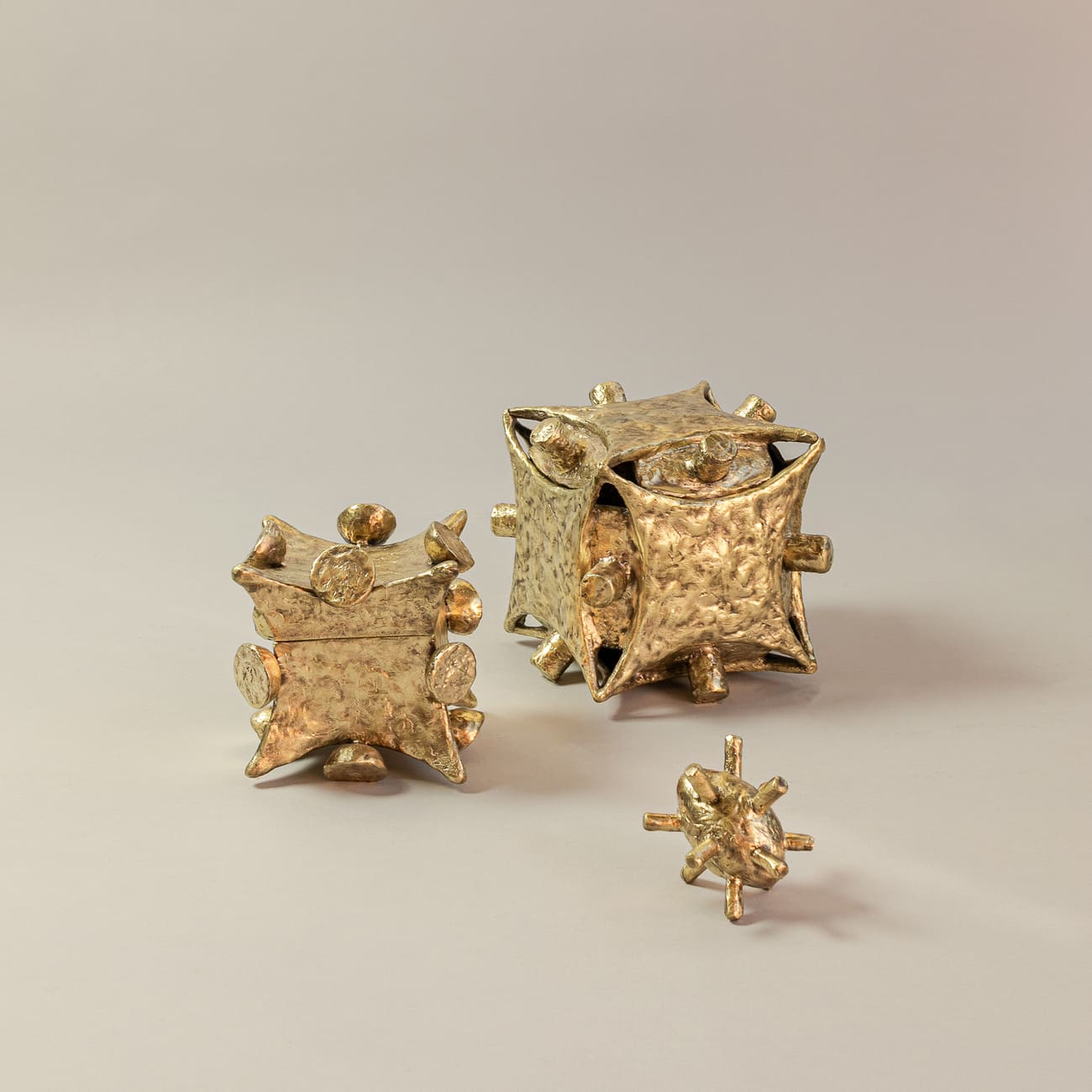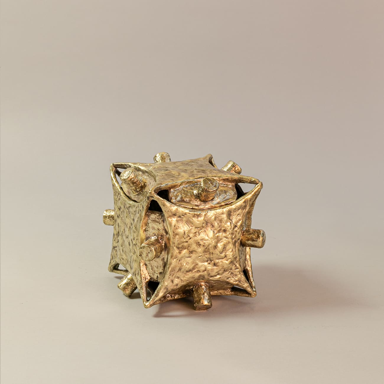 Brąz odlewany metodą traconego wosku pozwala na uchwycenie drobnych niuansów formy. Polerowanie powierzchni wzmacnia refleksyjność materiału i podkreśla jego ciężar, jednocześnie eksponując ślady procesu technologicznego.