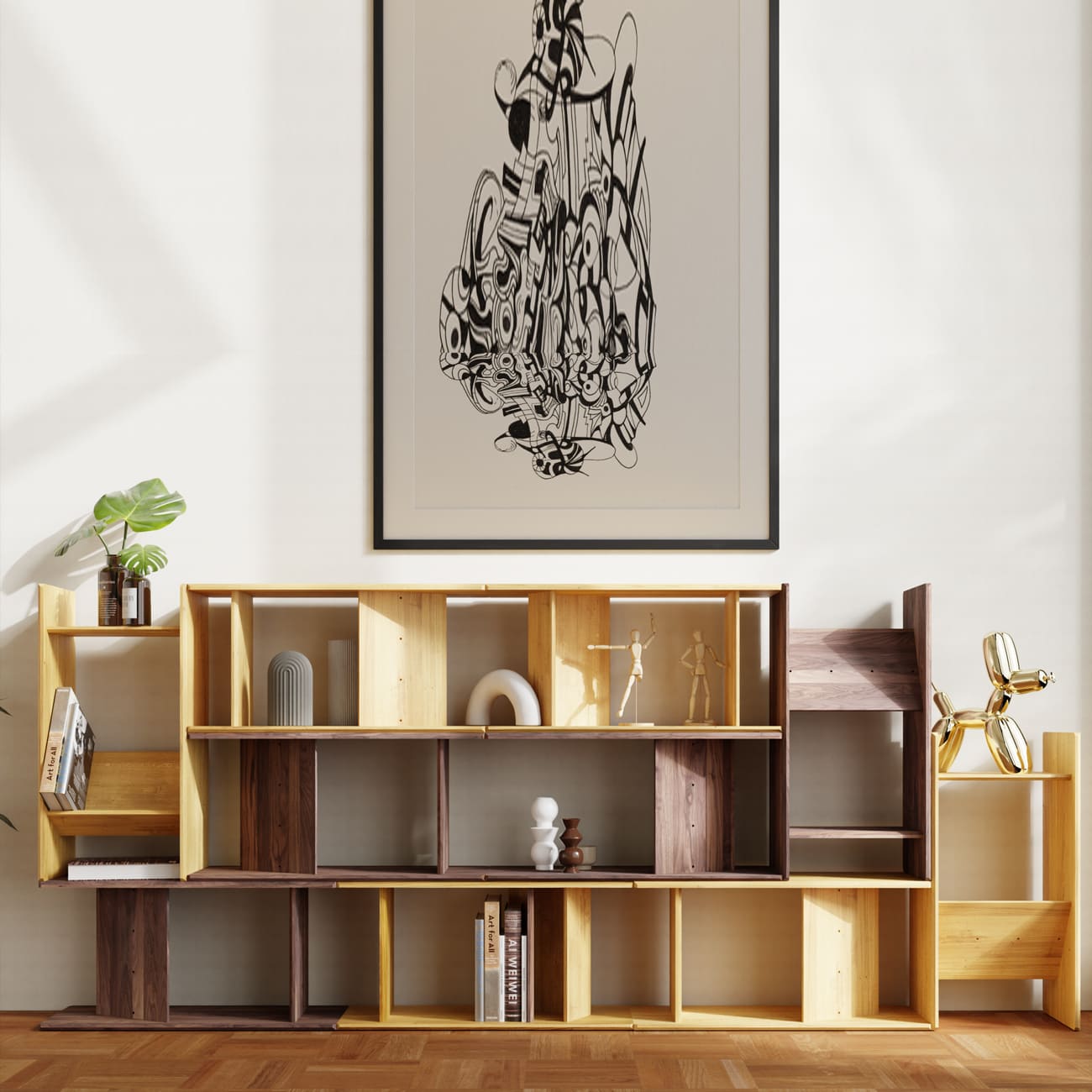 Regał modułowy Vero 05, dąb, 138x322x35 cm, proj. Karol Droszcz, Snapp form, Polska, 2025.