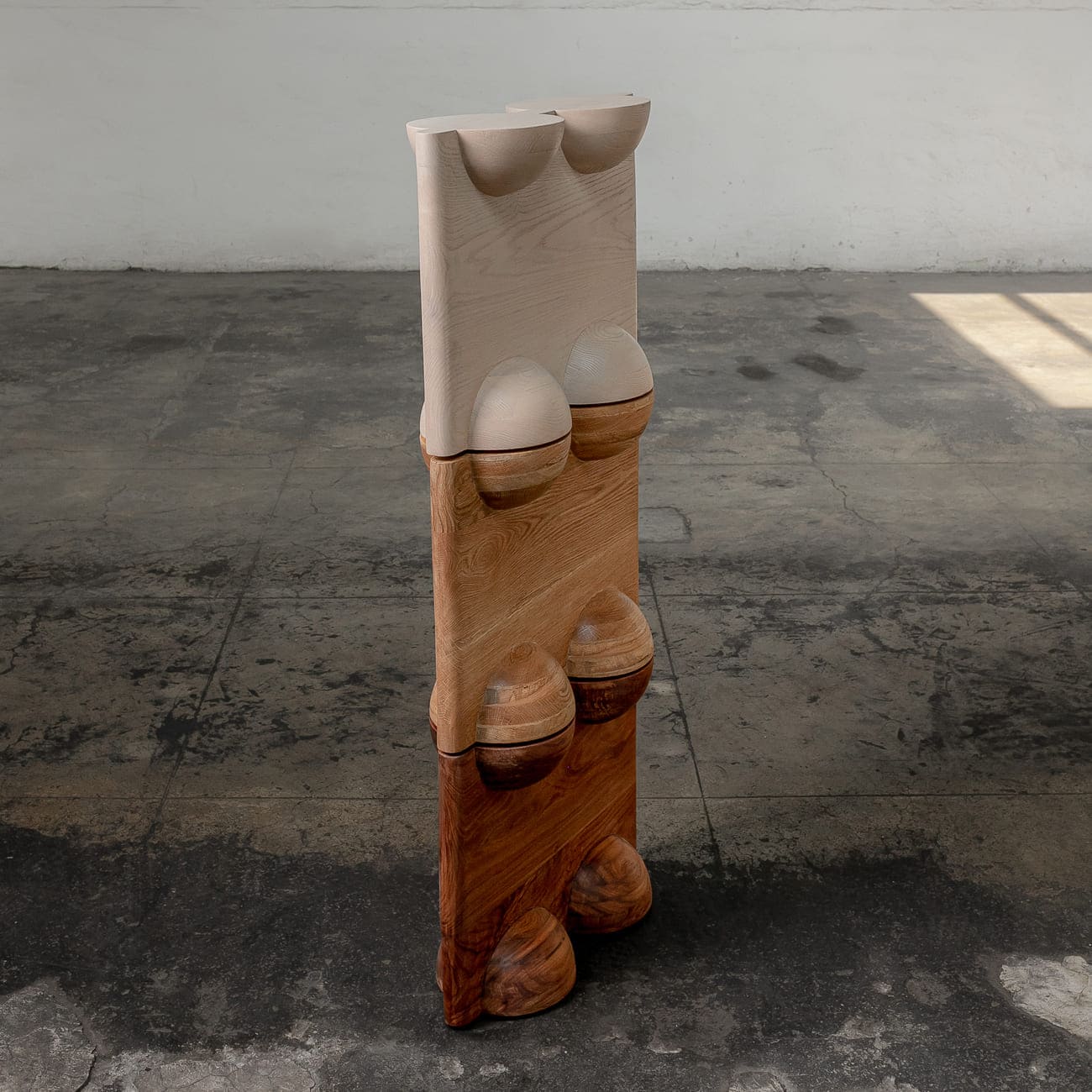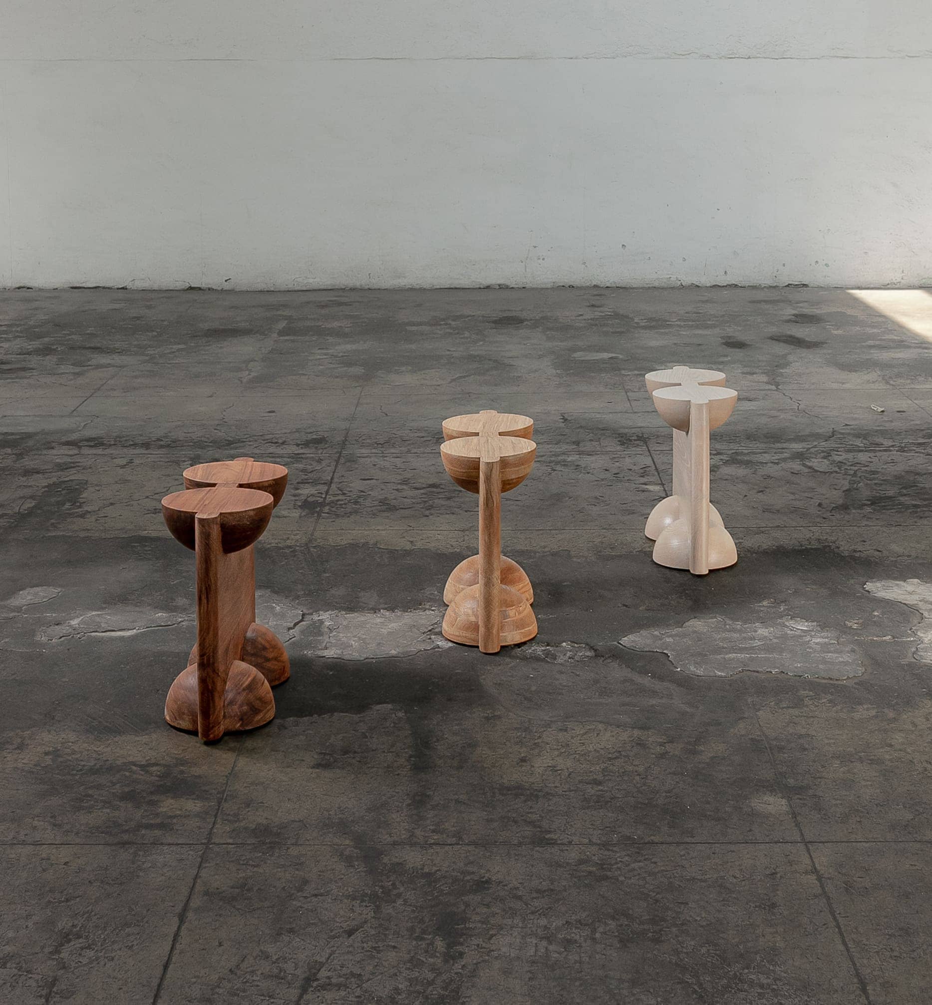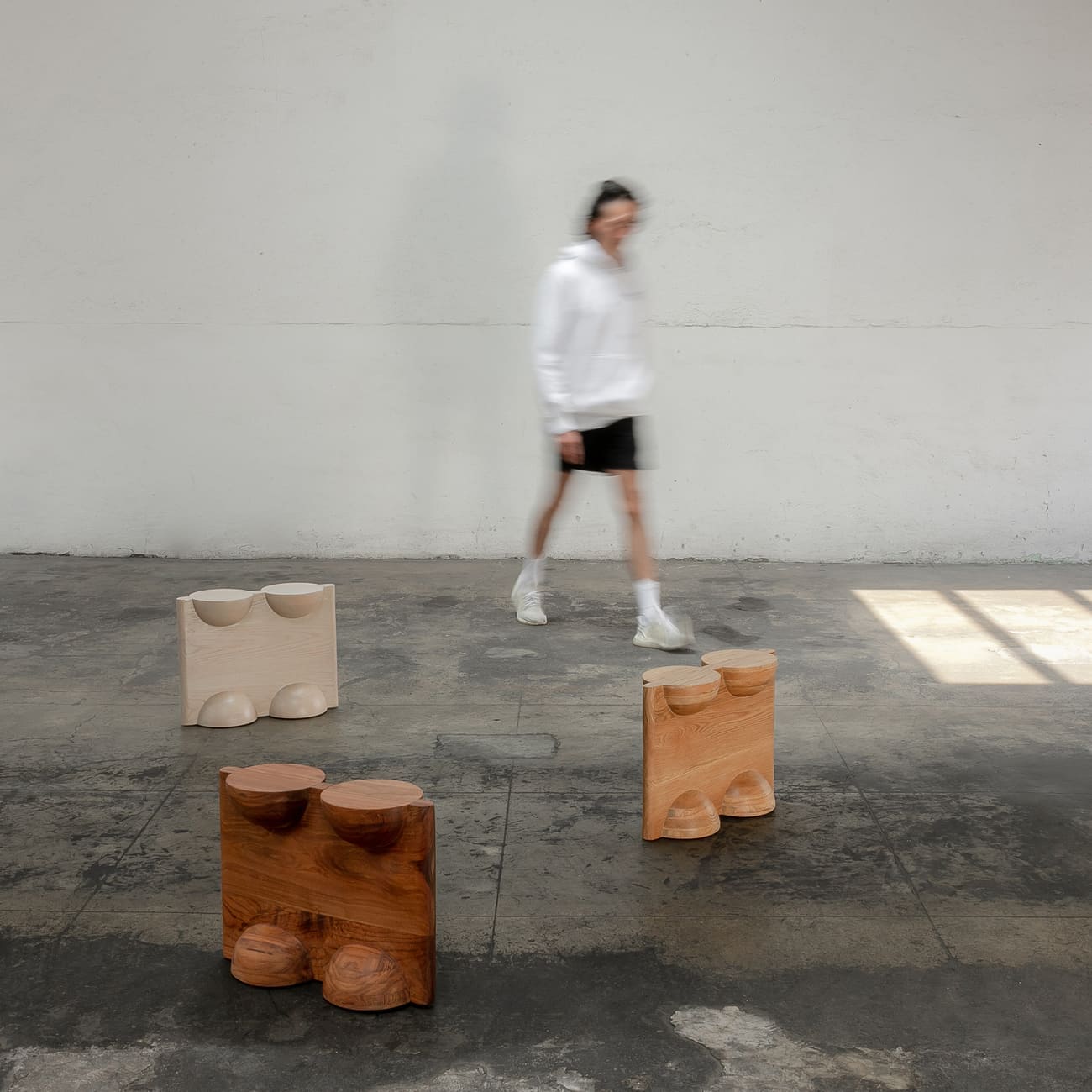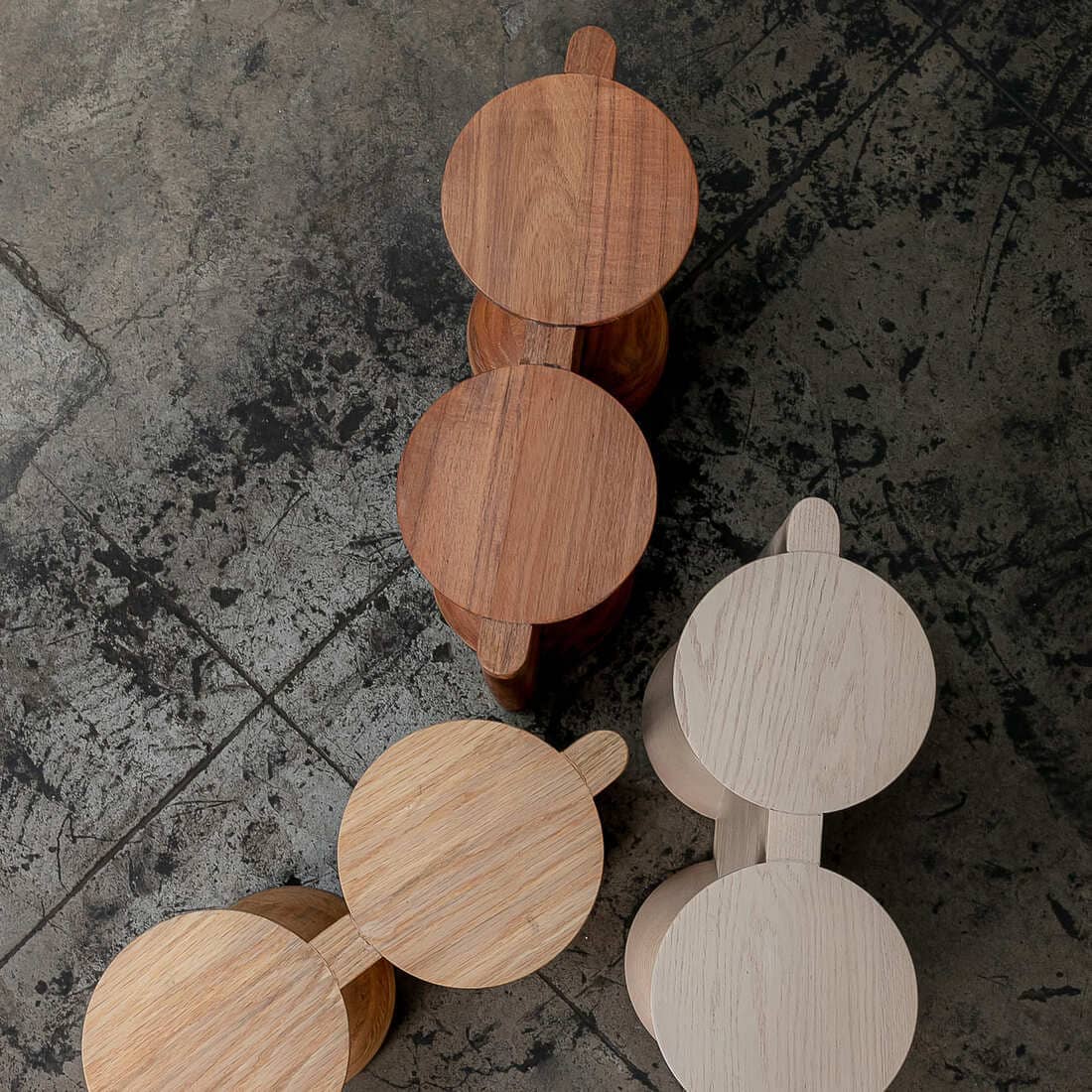 Stołek BLEO Stool II, dąb czerwony cream wash, proj. Daniel Couttolenc, Meksyk, 2023.