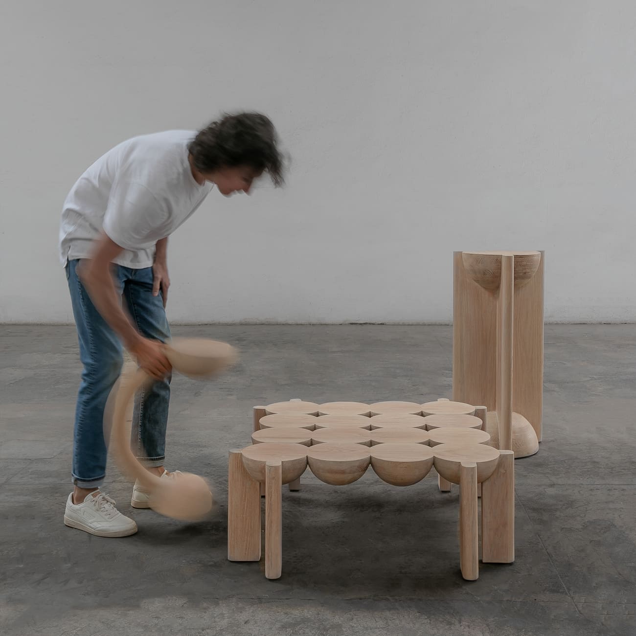 Stolik boczny BLEO Auxiliary, dąb czerwony cream wash, proj. Daniel Couttolenc, Meksyk, 2023.