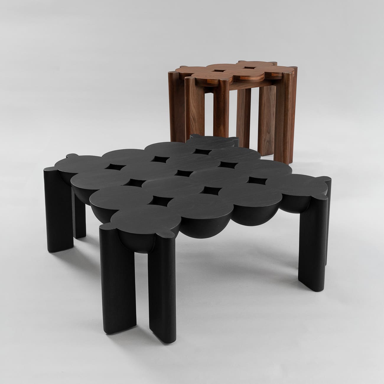 Stolik kawowy BLEO, dąb czerwony black finish, proj. Daniel Couttolenc, Meksyk, 2025.