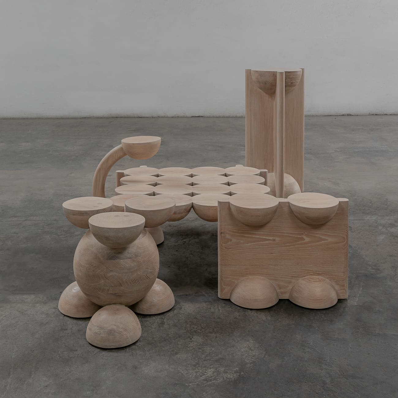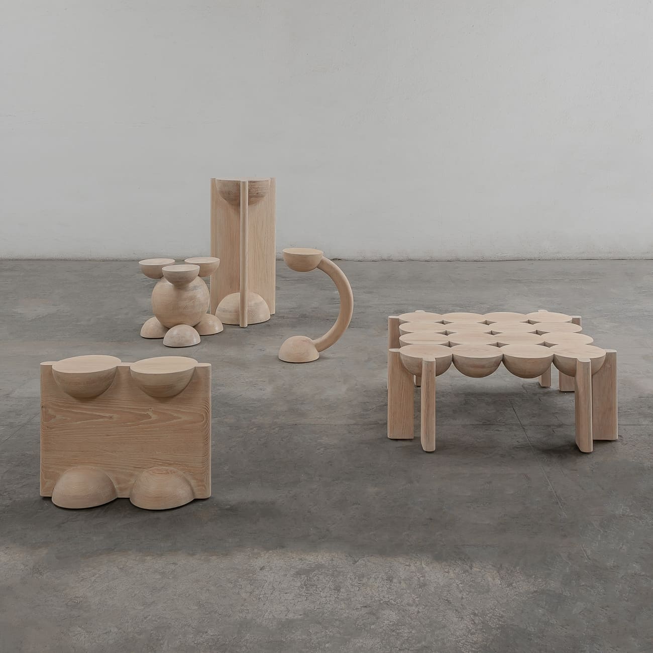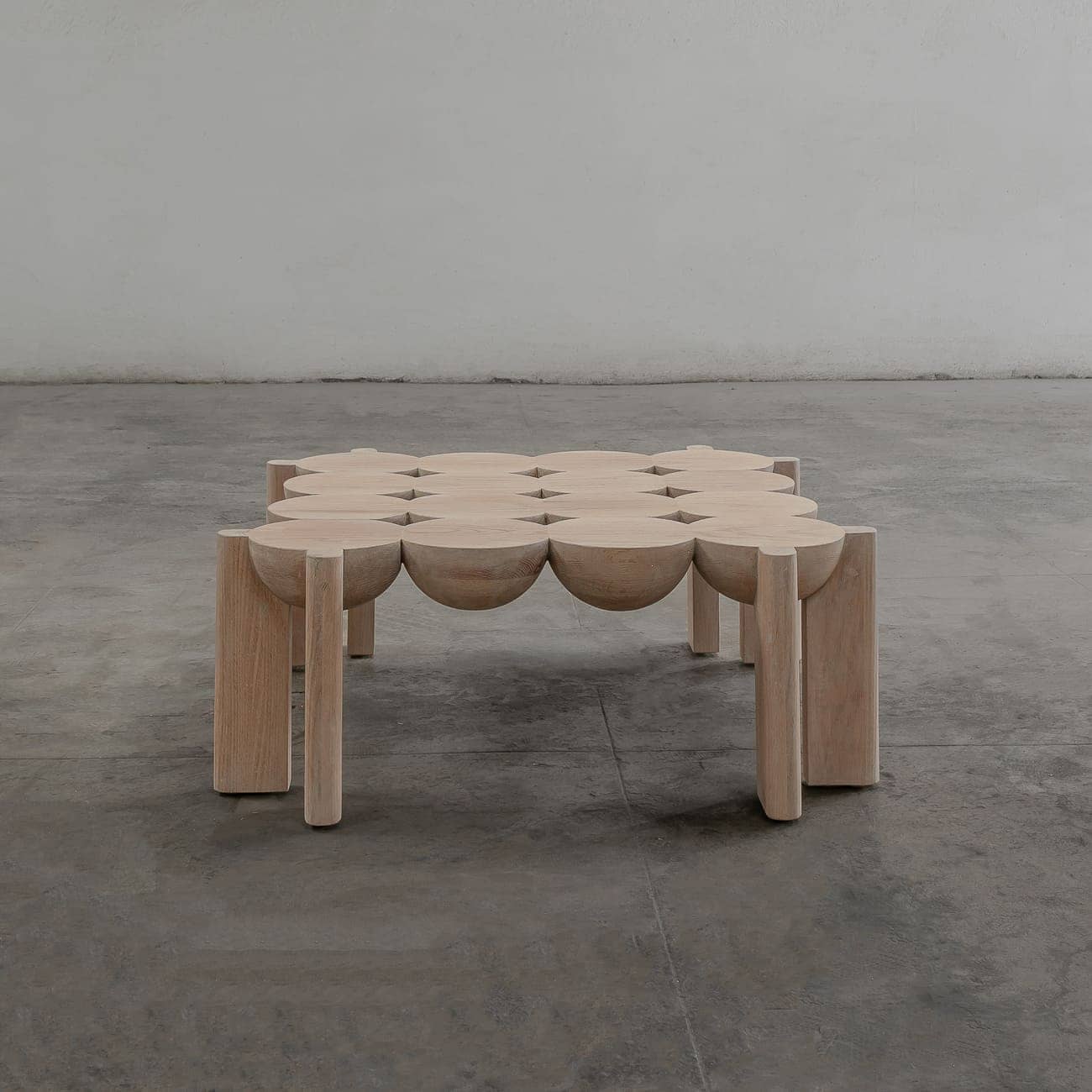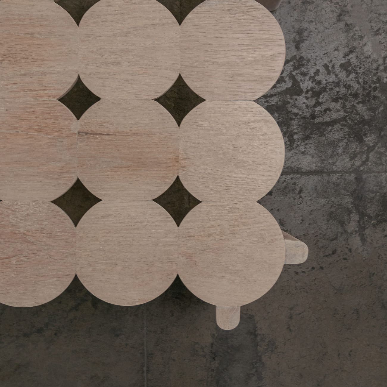 Stolik kawowy BLEO, dąb czerwony cream wash, proj. Daniel Couttolenc, Meksyk, 2023.