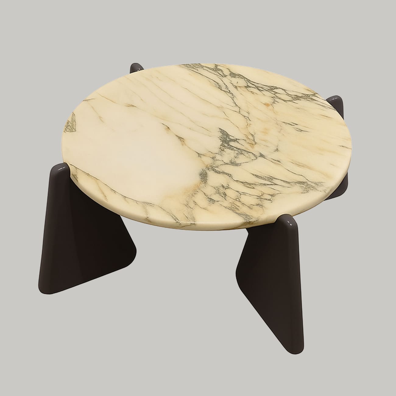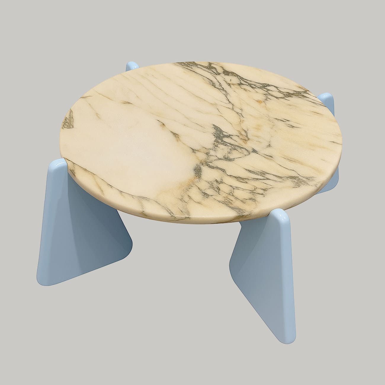 Stolik kawowy KID 07 STILL MATCH!, Ø 60 cm, blat kamienny, proj. please touch, Polska, 2025.
