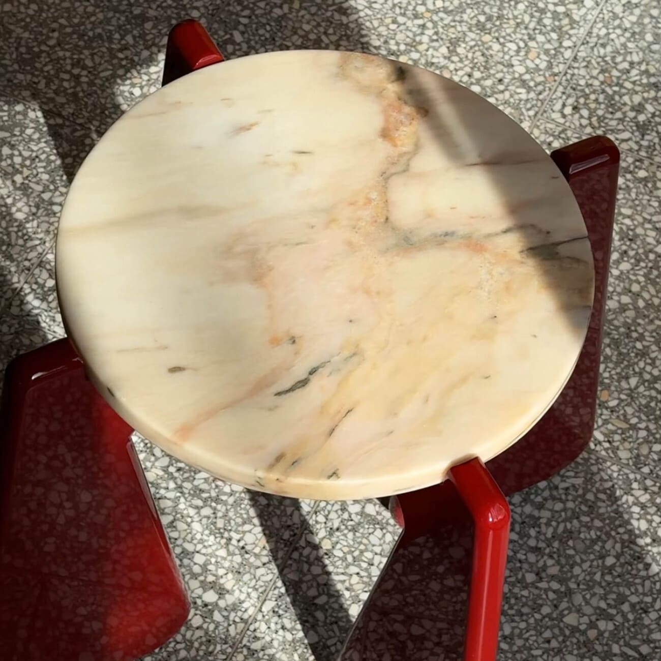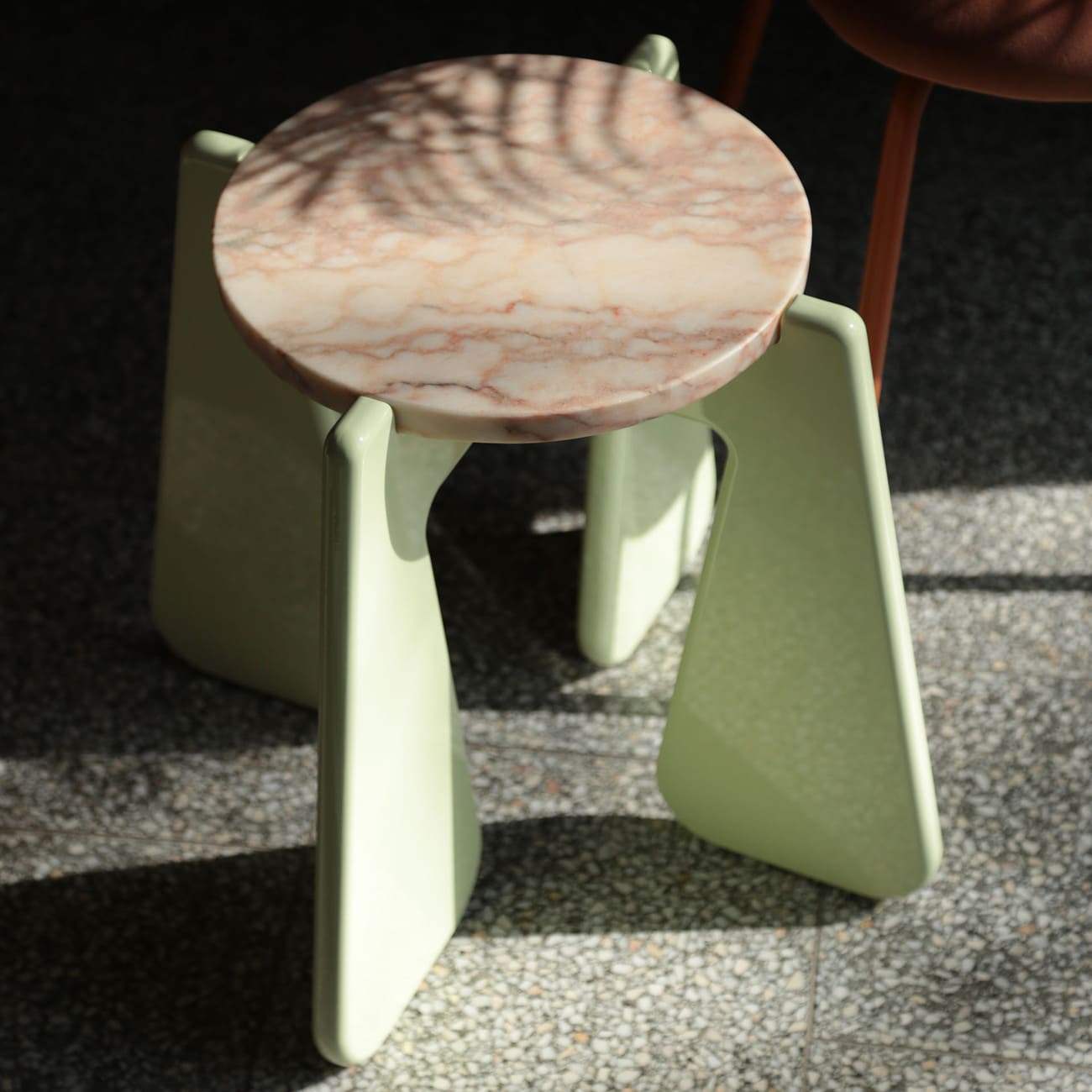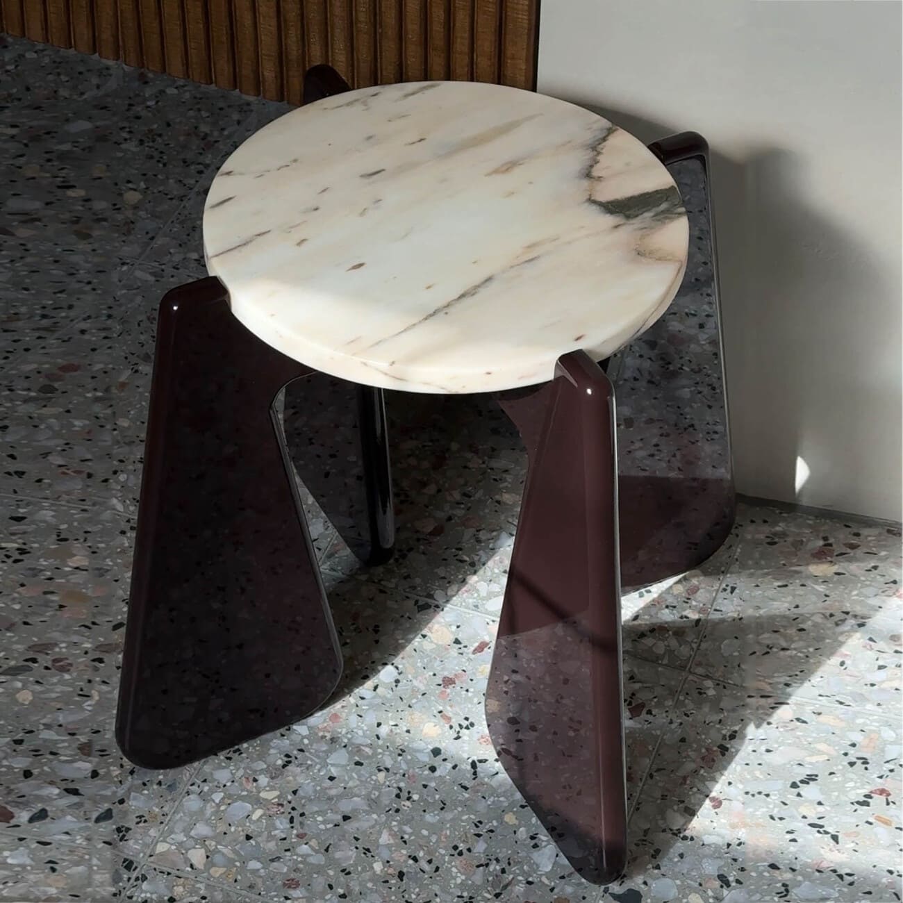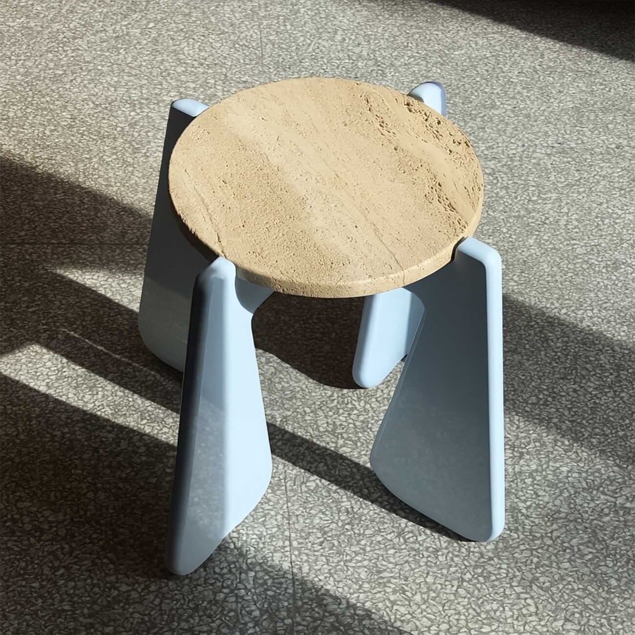 Stolik pomocniczy KID 02 MATCH!, Ø 31 cm, blat kamienny, proj. please touch, Polska, 2025.