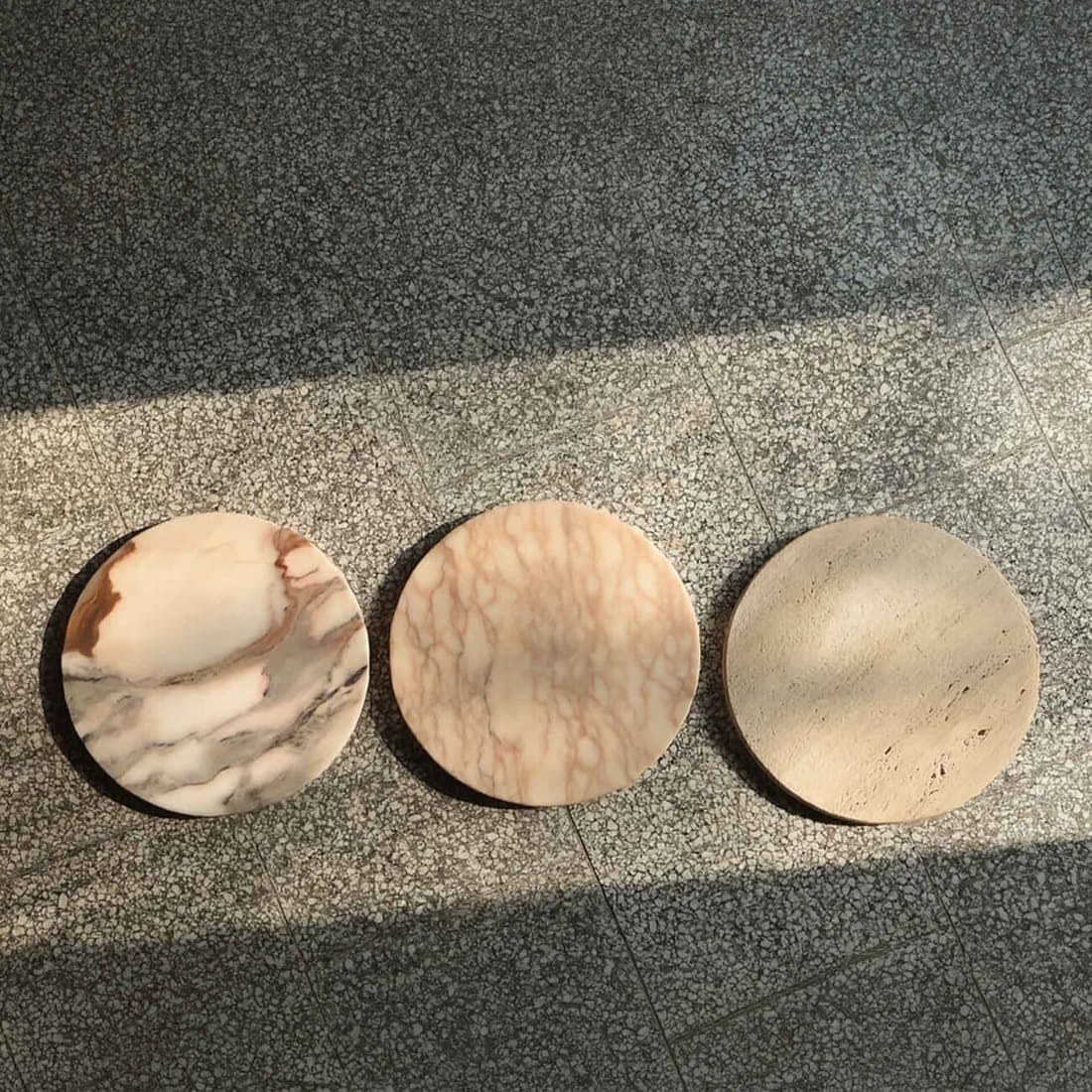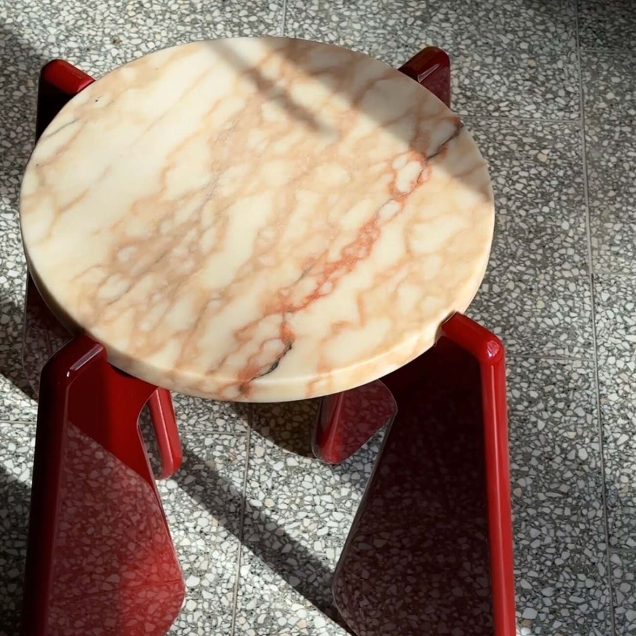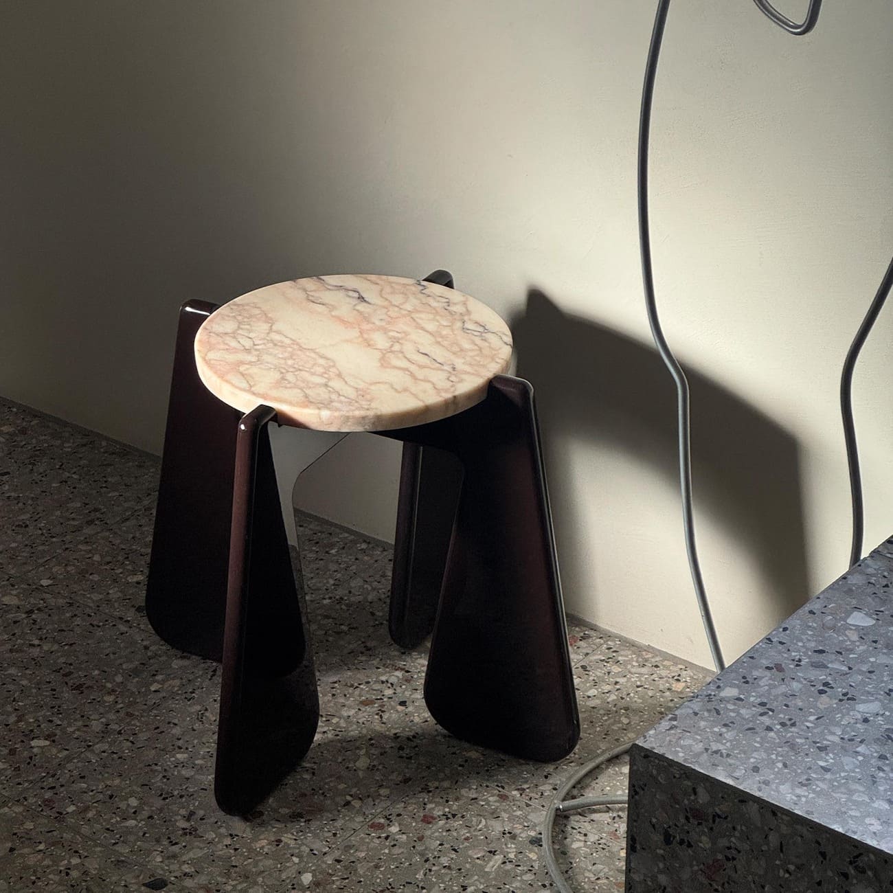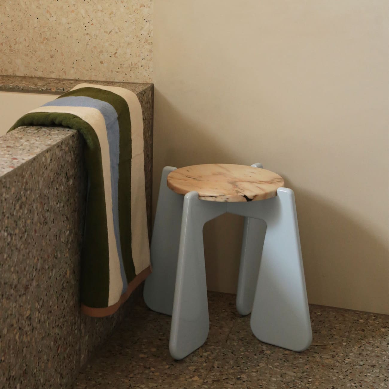 Stolik pomocniczy KID 02 MATCH!, Ø 31 cm, blat kamienny, proj. please touch, Polska, 2025.