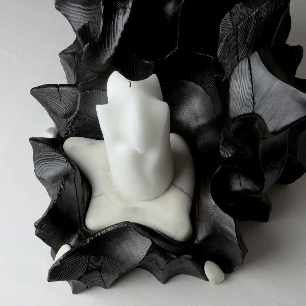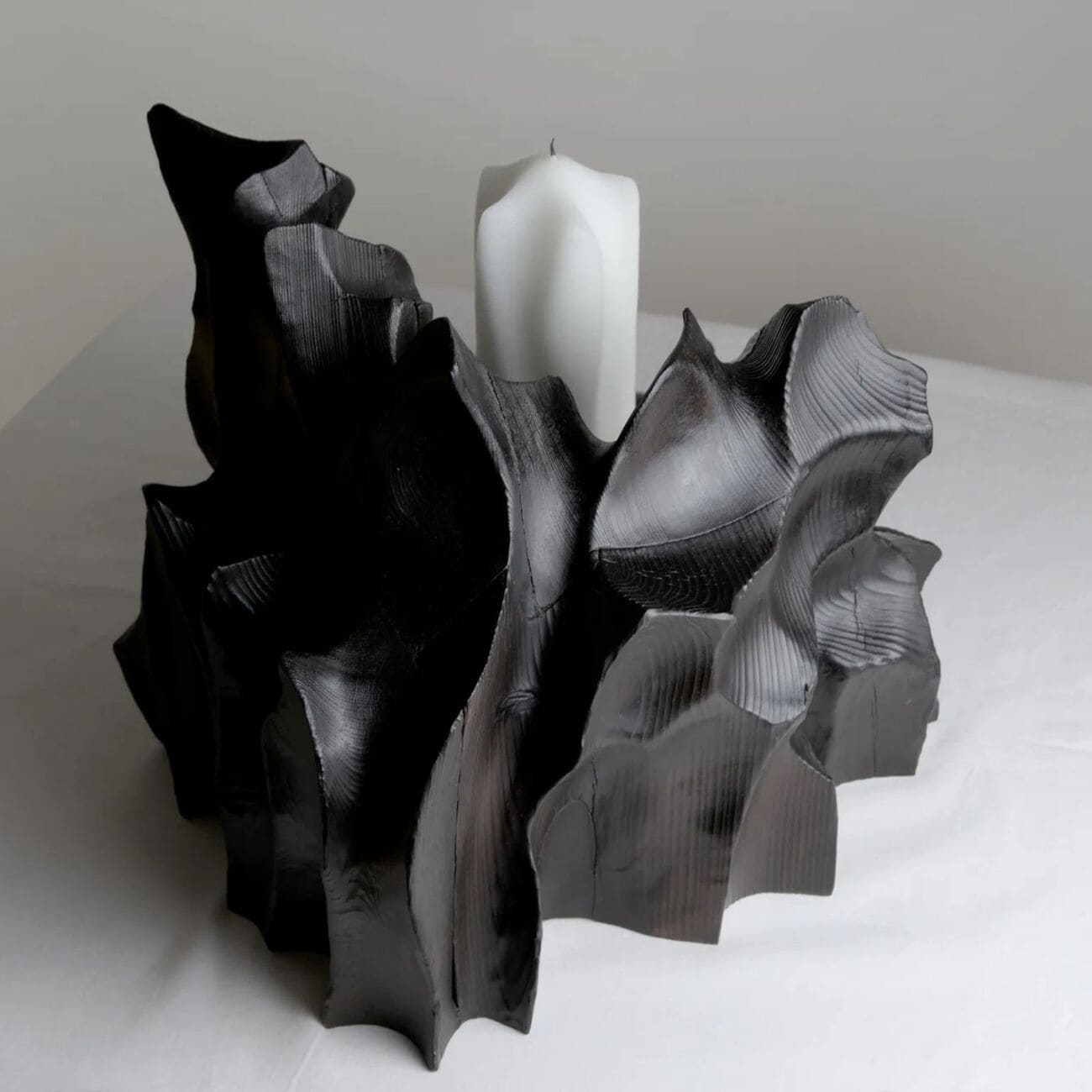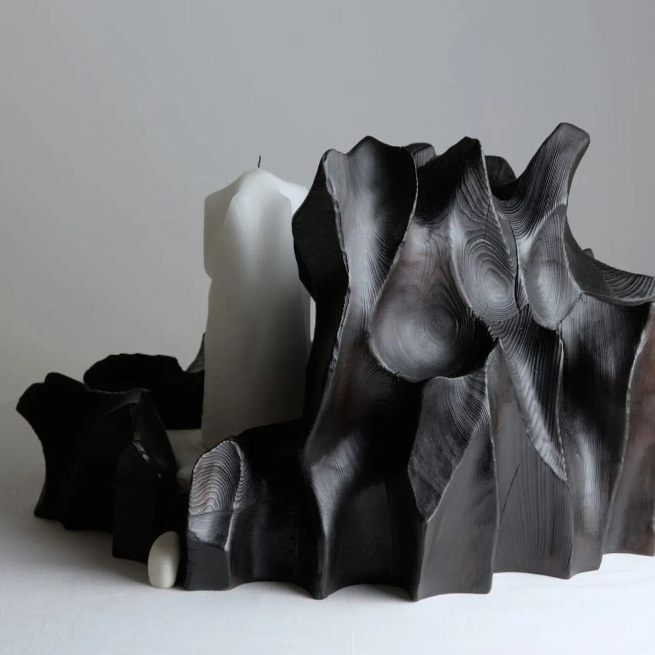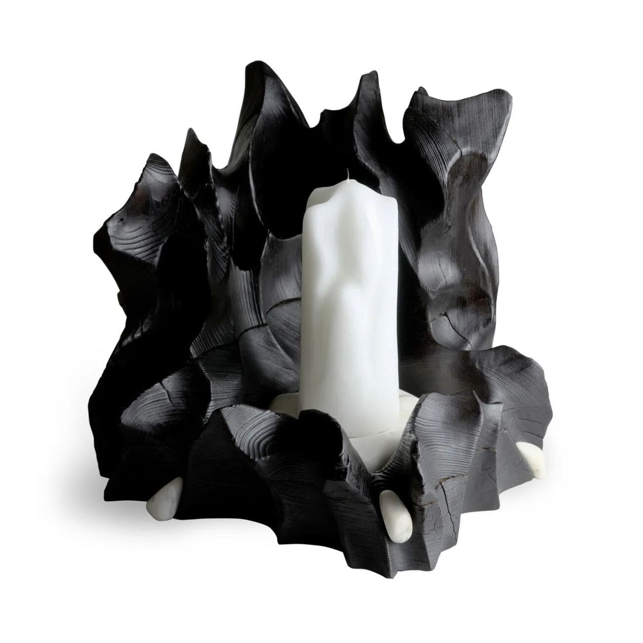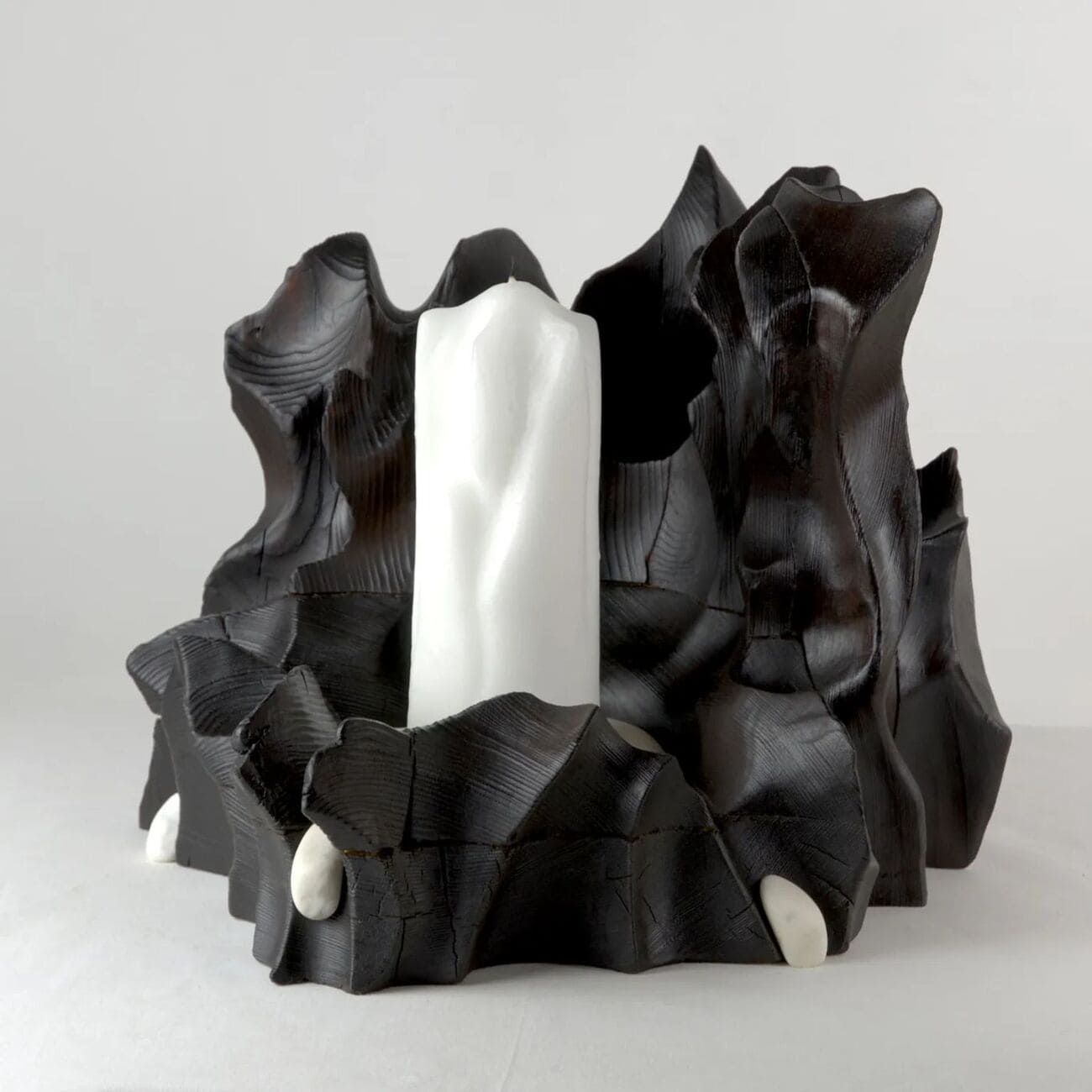 Świecznik Wildrose z kolekcji Melting, drewno i marmur, proj. Gábor Góbi, Węgry, 2025.