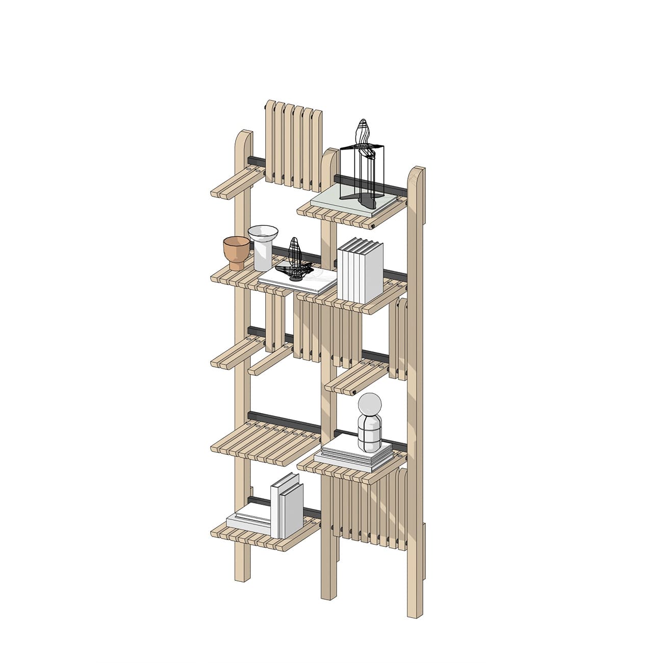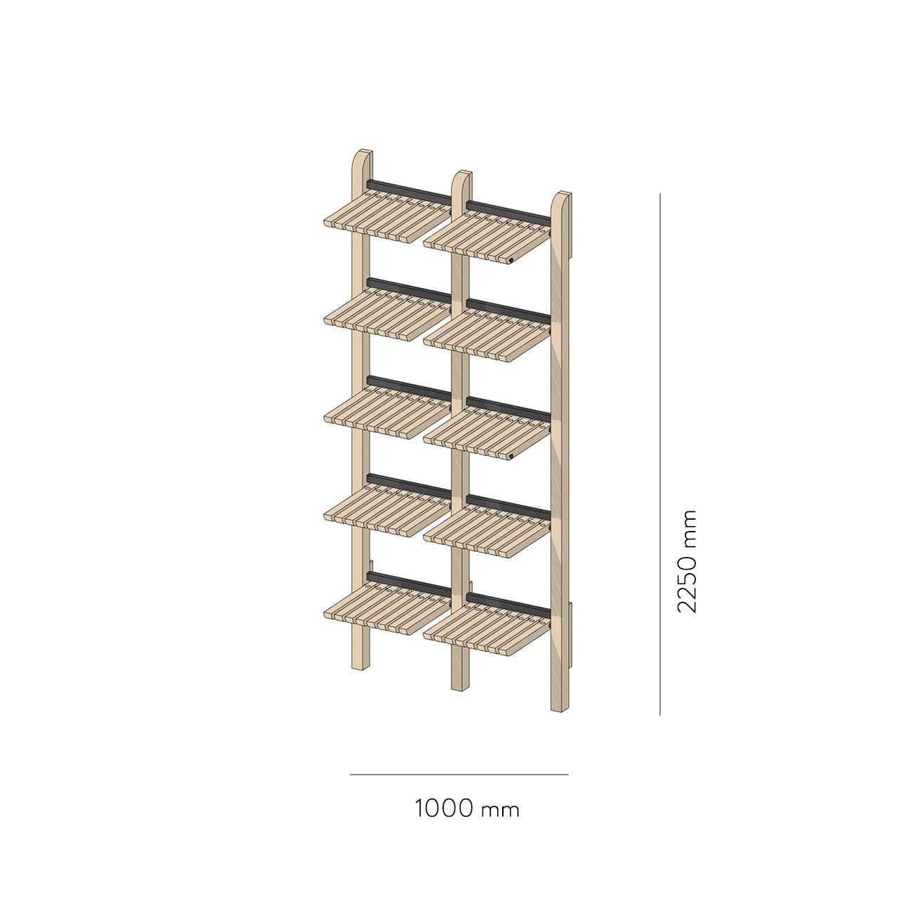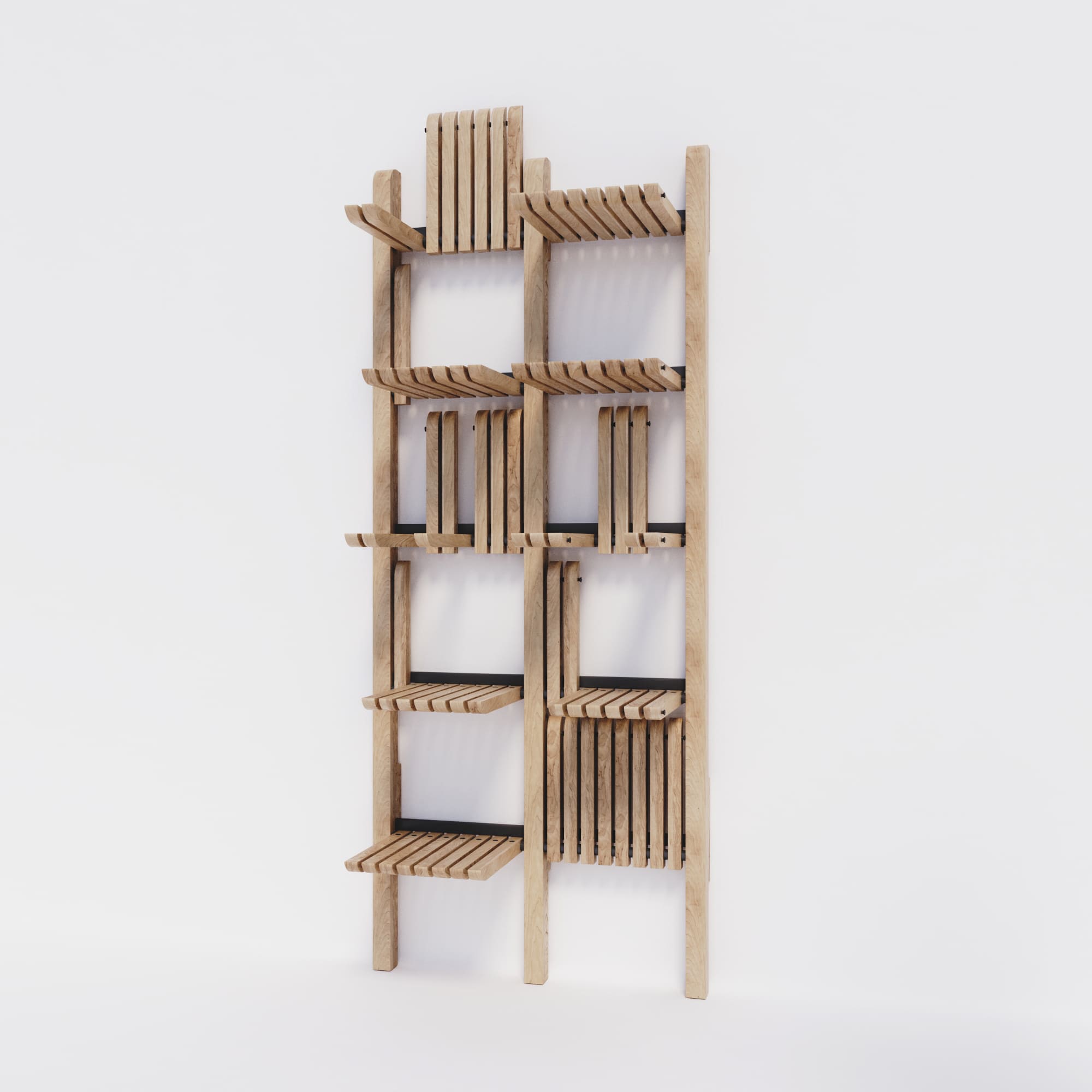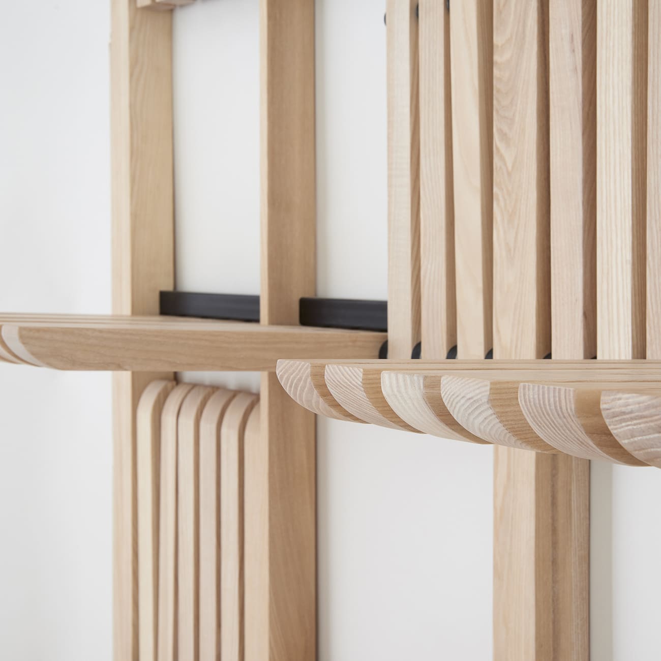 System regałów modułowych Gate 1000, jesion naturalny, proj. Artem Zakharchenko, Ukraina, 2017.