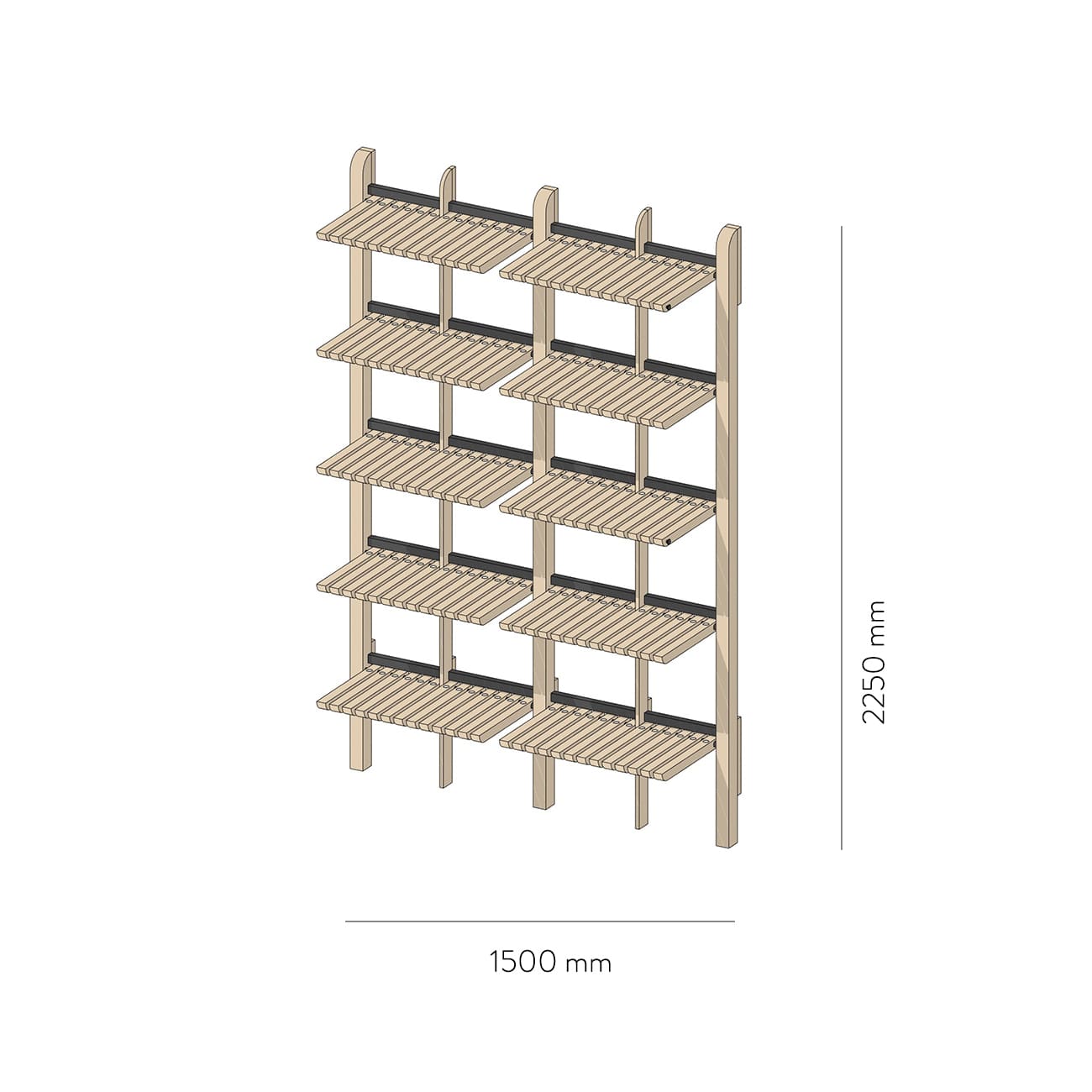 System regałów modułowych Gate 1500, jesion naturalny, proj. Artem Zakharchenko, Ukraina, 2017.