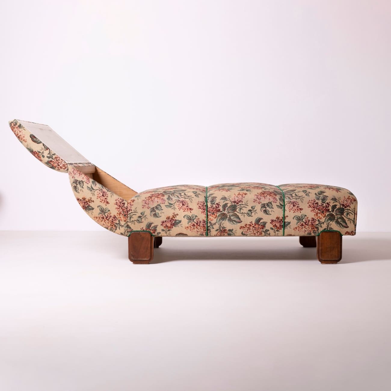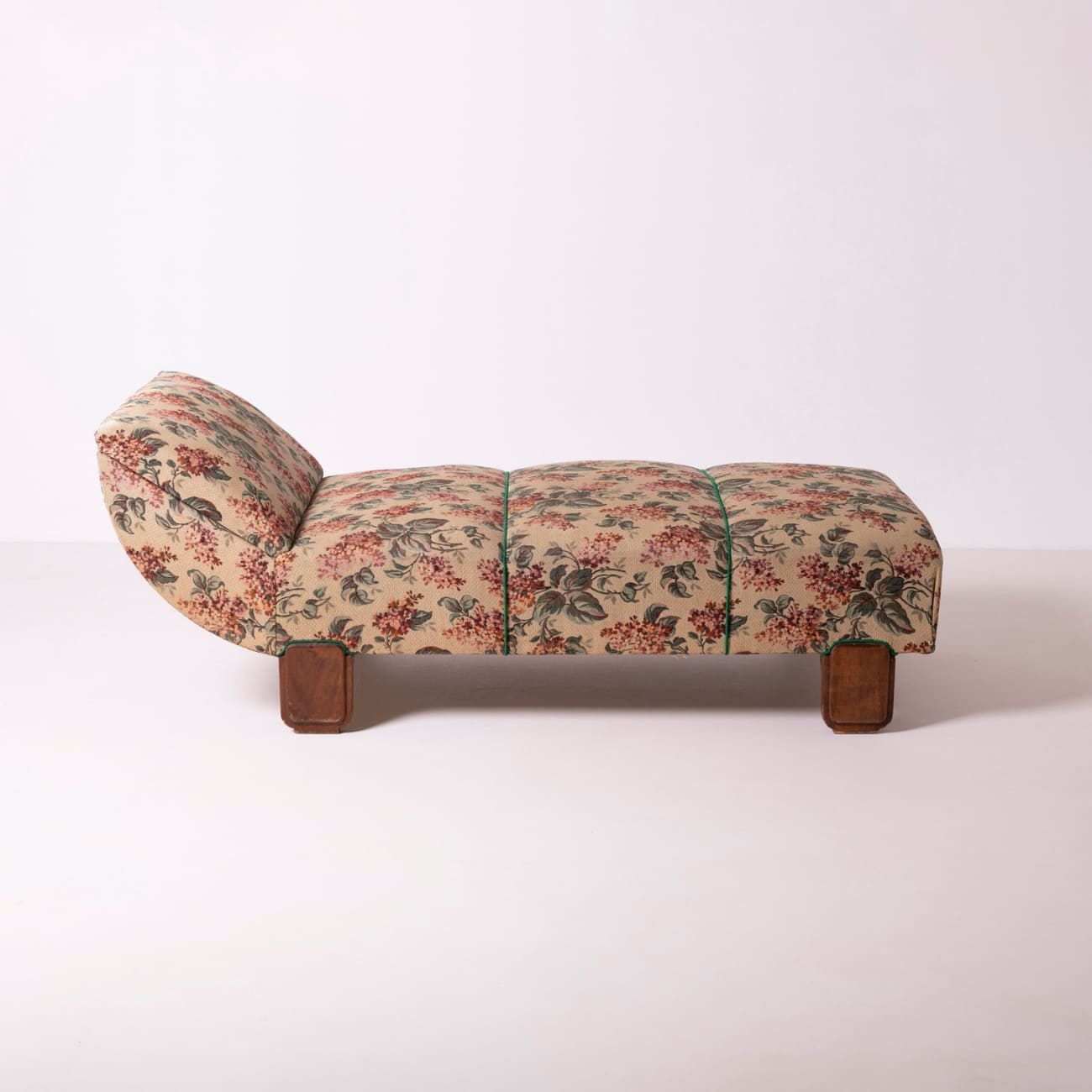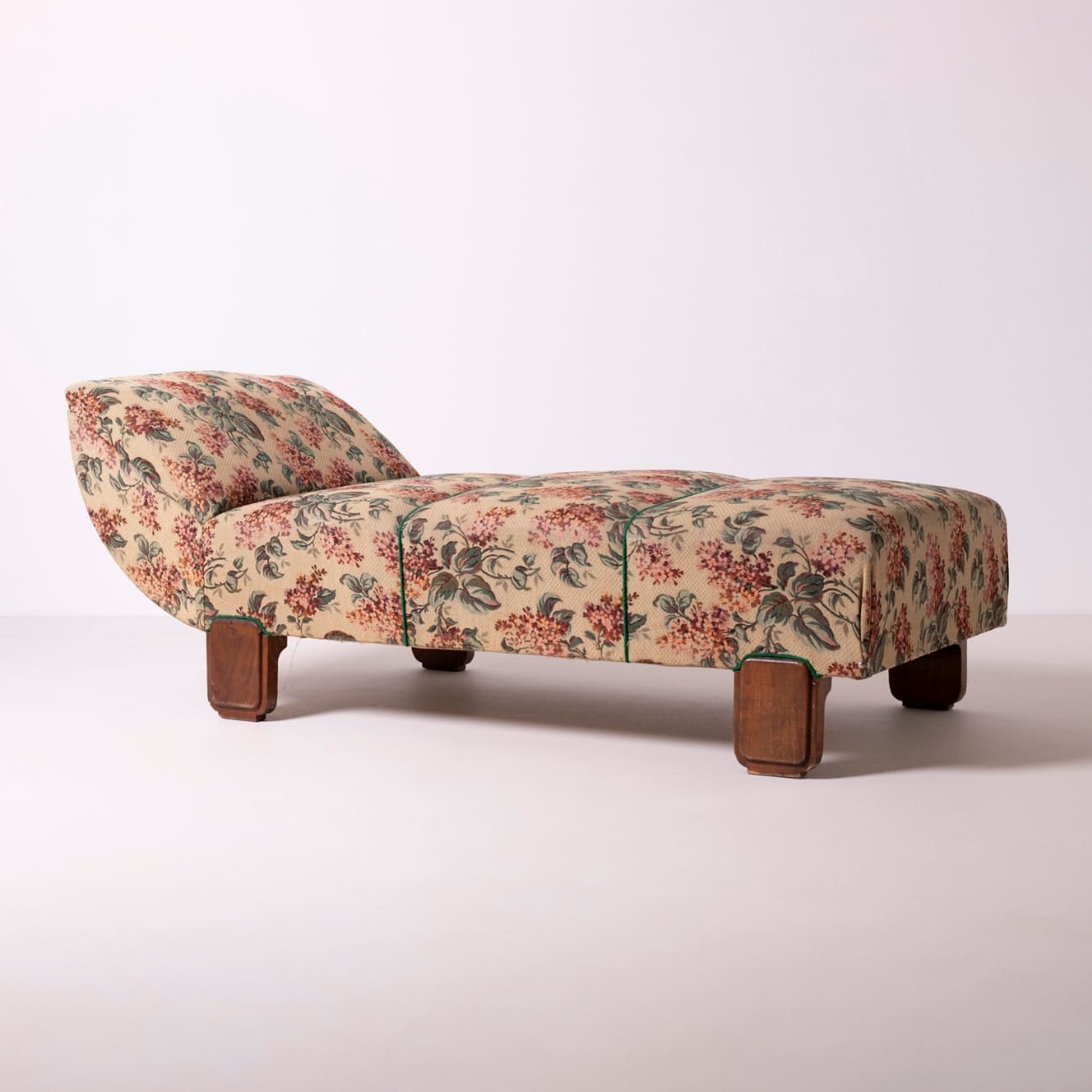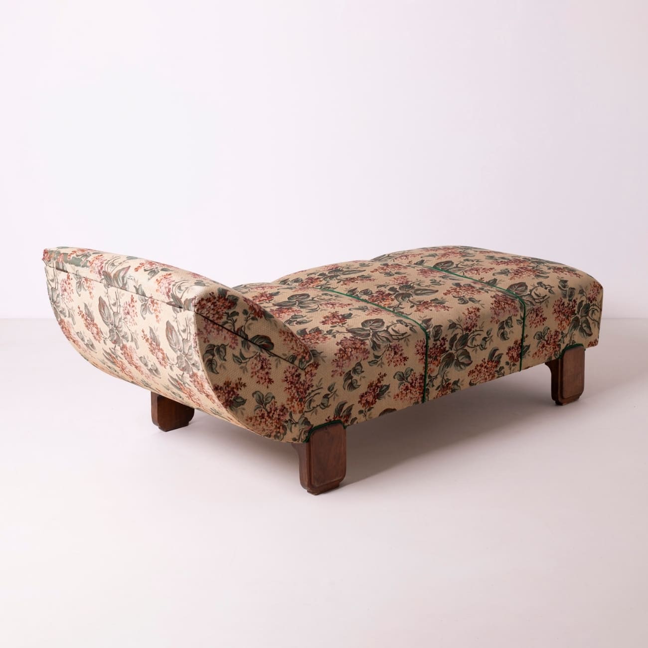 Szezlong z kwiatową tapicerką, proj. Jindřich Halabala, Czechosłowacja, lata 50.