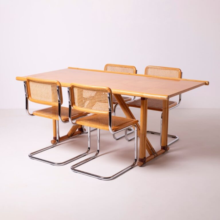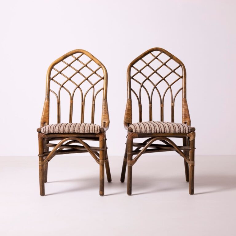 Zestaw dwóch krzeseł jadalnianych z rattanem, Niemcy, lata 80.