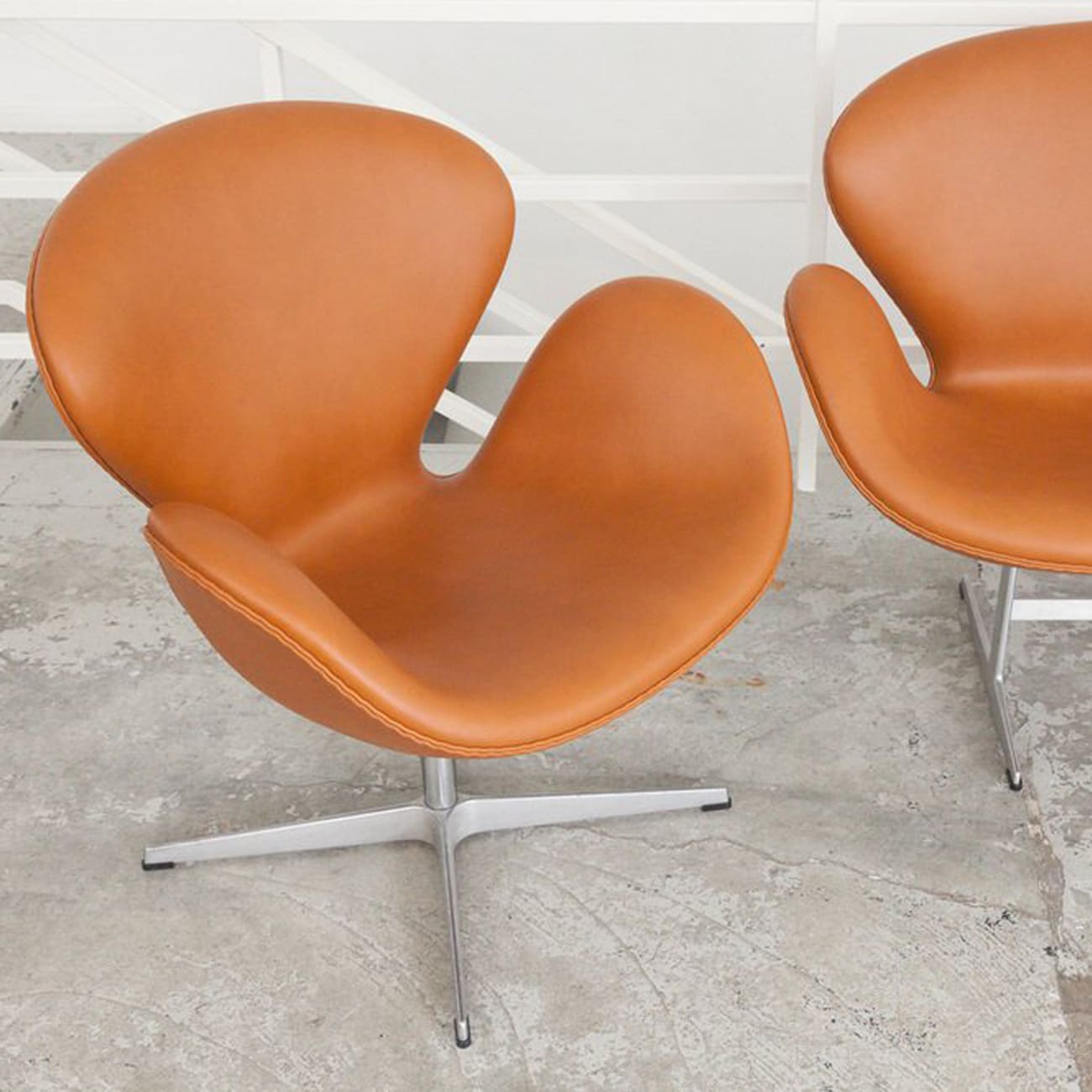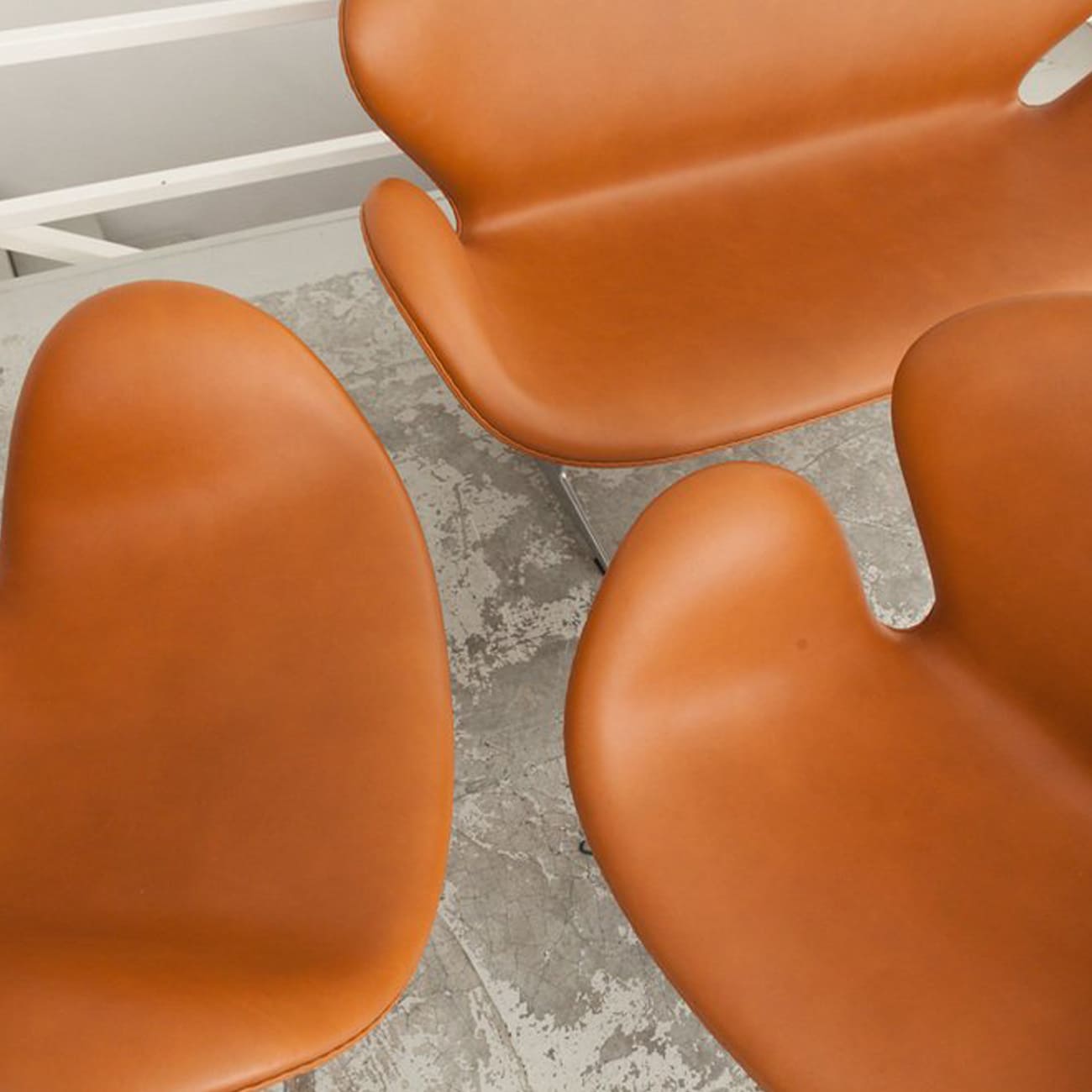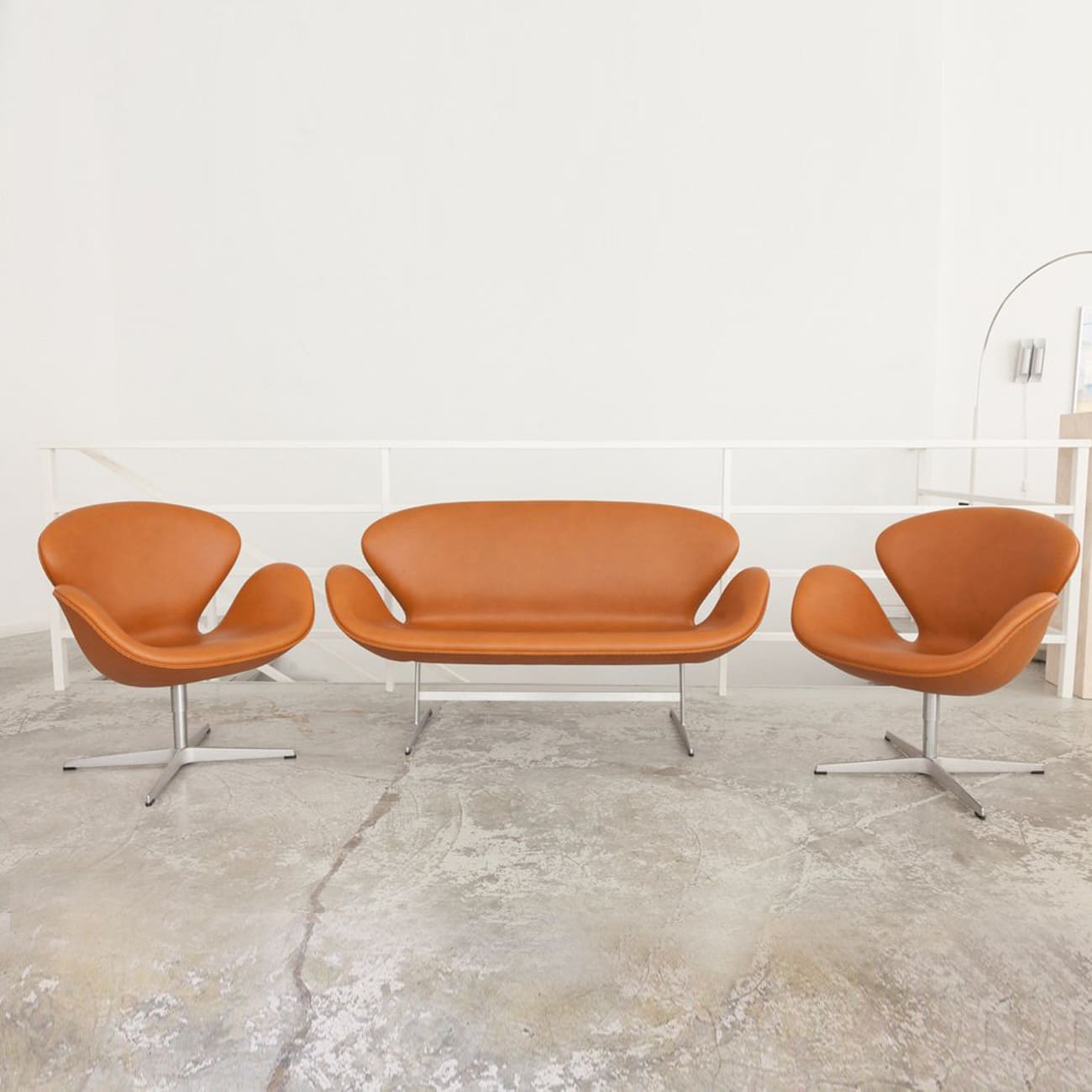 Zestaw sofa i dwa fotele Swan, caramel leather, proj. Arne Jacobsen, Fritz Hansen, Dania, 1958.