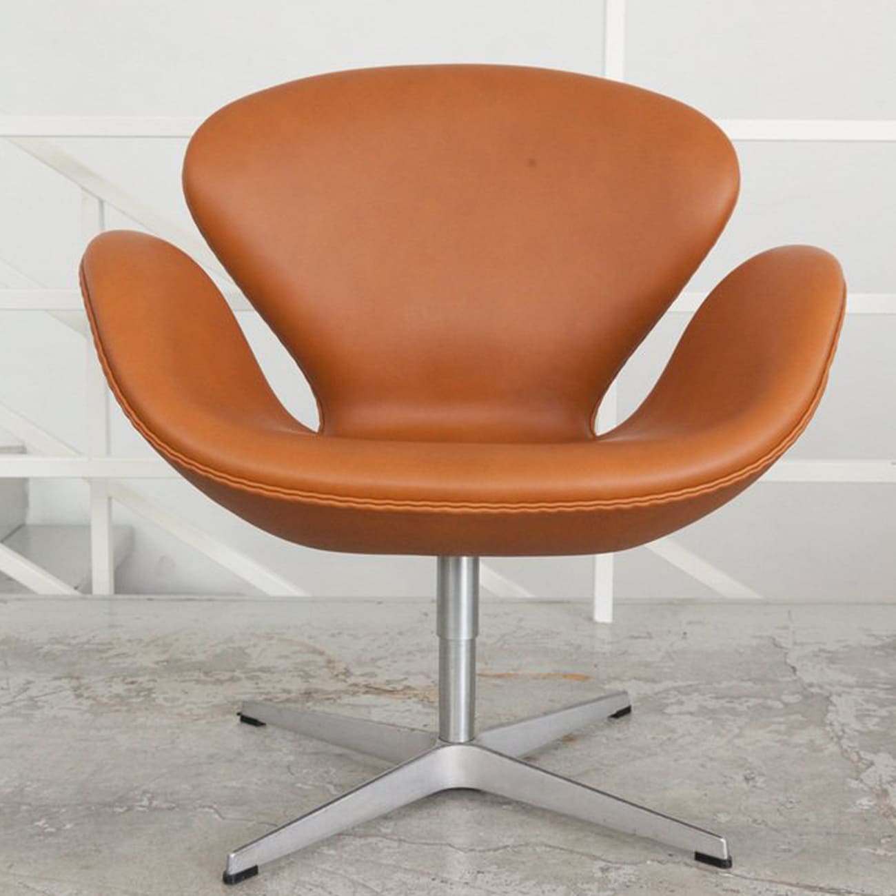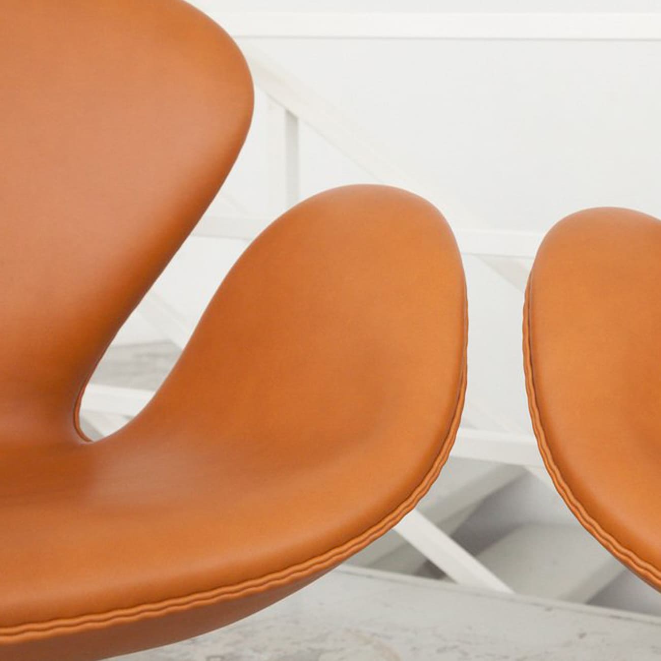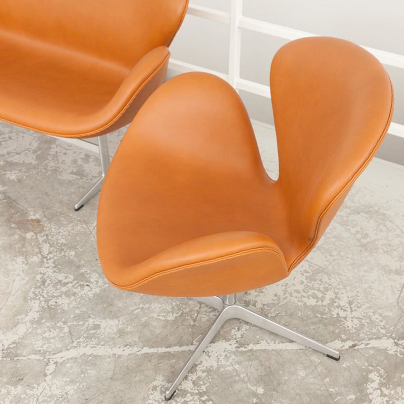 Zestaw sofa i dwa fotele Swan, caramel leather, proj. Arne Jacobsen, Fritz Hansen, Dania, 1958.