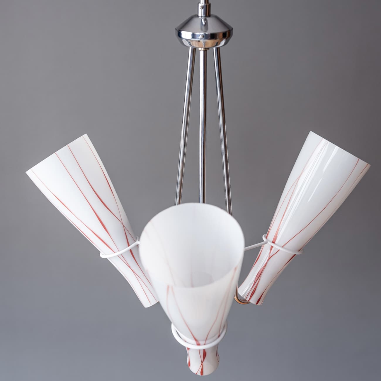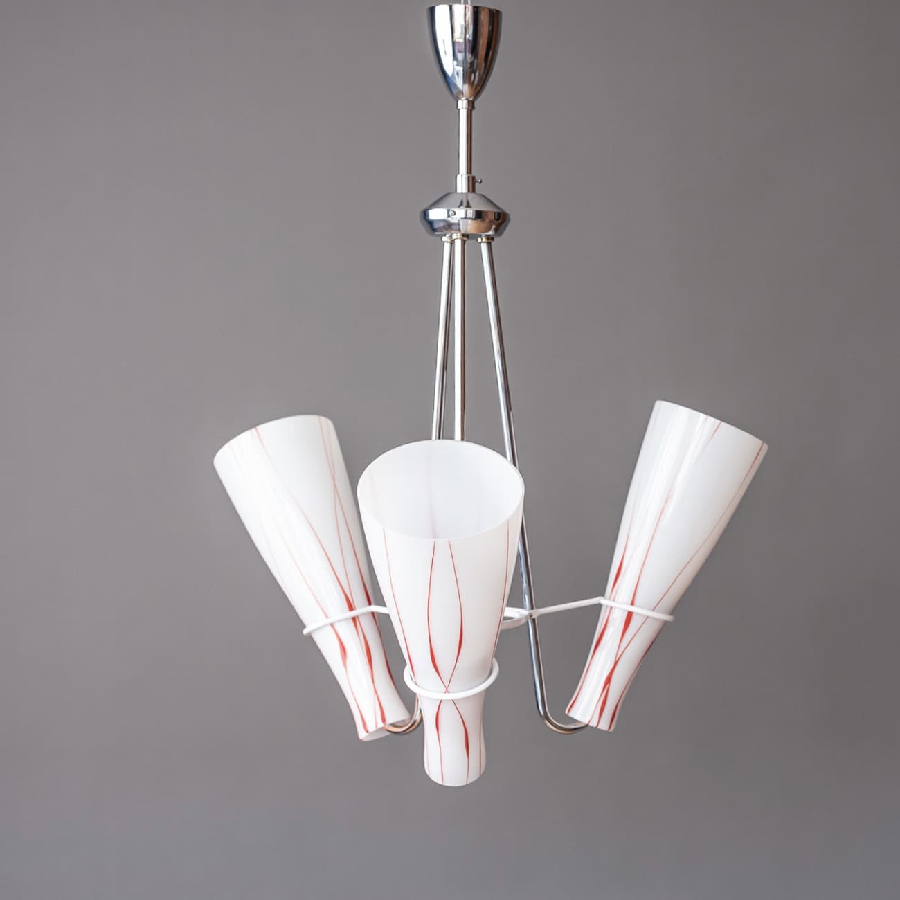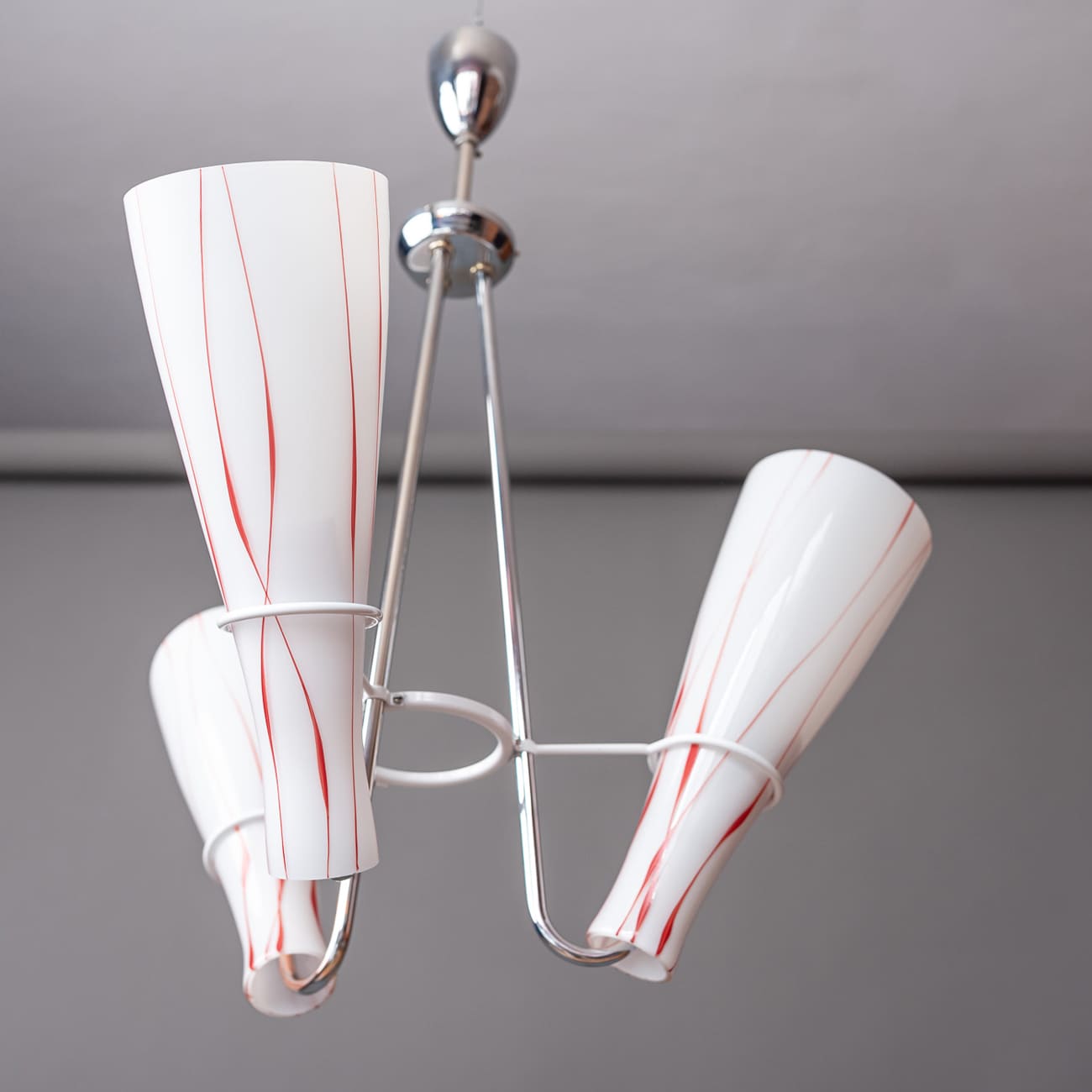Żyrandol Zukov 6603/3, ręcznie malowany wzór, Spółdzielnia Napako, Czechosłowacja, lata 60.