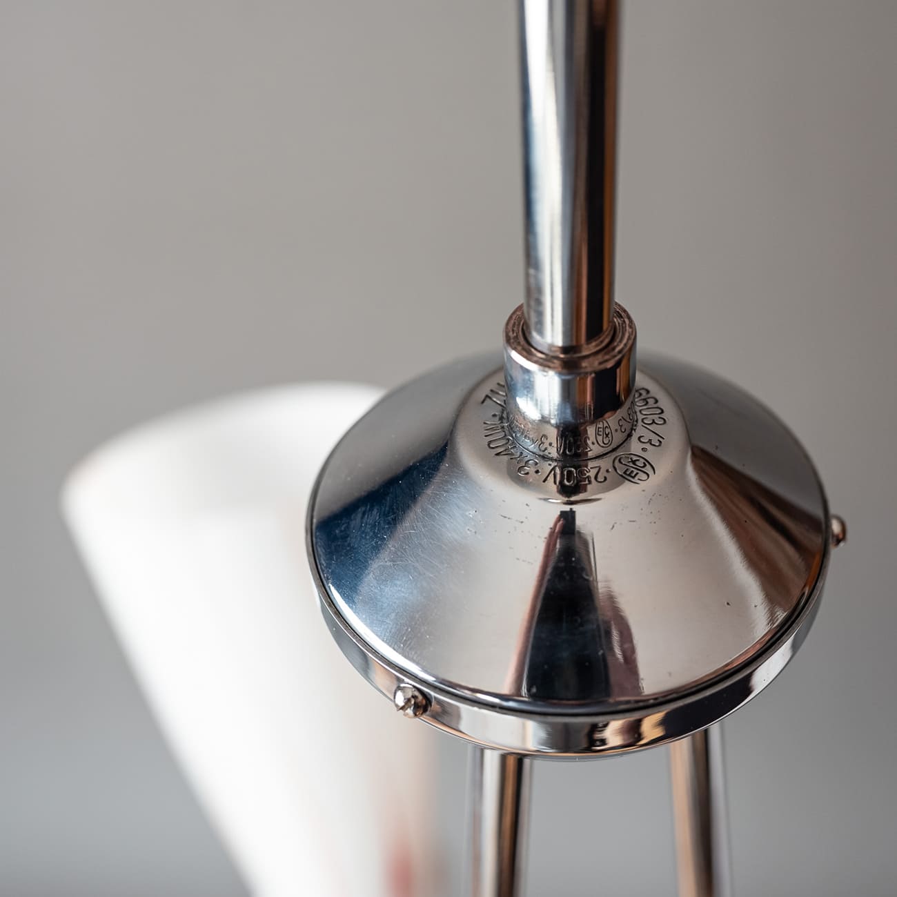 Prezentowany egzemplarz został poddany renowacji wykonywanej zgodnie ze sztuką konserwatorską. Niklowane elementy konstrukcji oczyszczono i przywrócono im pierwotną świetlistość, natomiast stalowe części nośne pokryto nową powłoką lakierniczą w technologii proszkowej, wierną kolorytowi historycznemu. Instalację elektryczną odtworzono od podstaw, pozostawiając oryginalne oprawy E14, charakterystyczne dla konstrukcji Napako z tego okresu. Wszystkie komponenty (także klosze) zachowane są w pełnej oryginalności materiałowej.